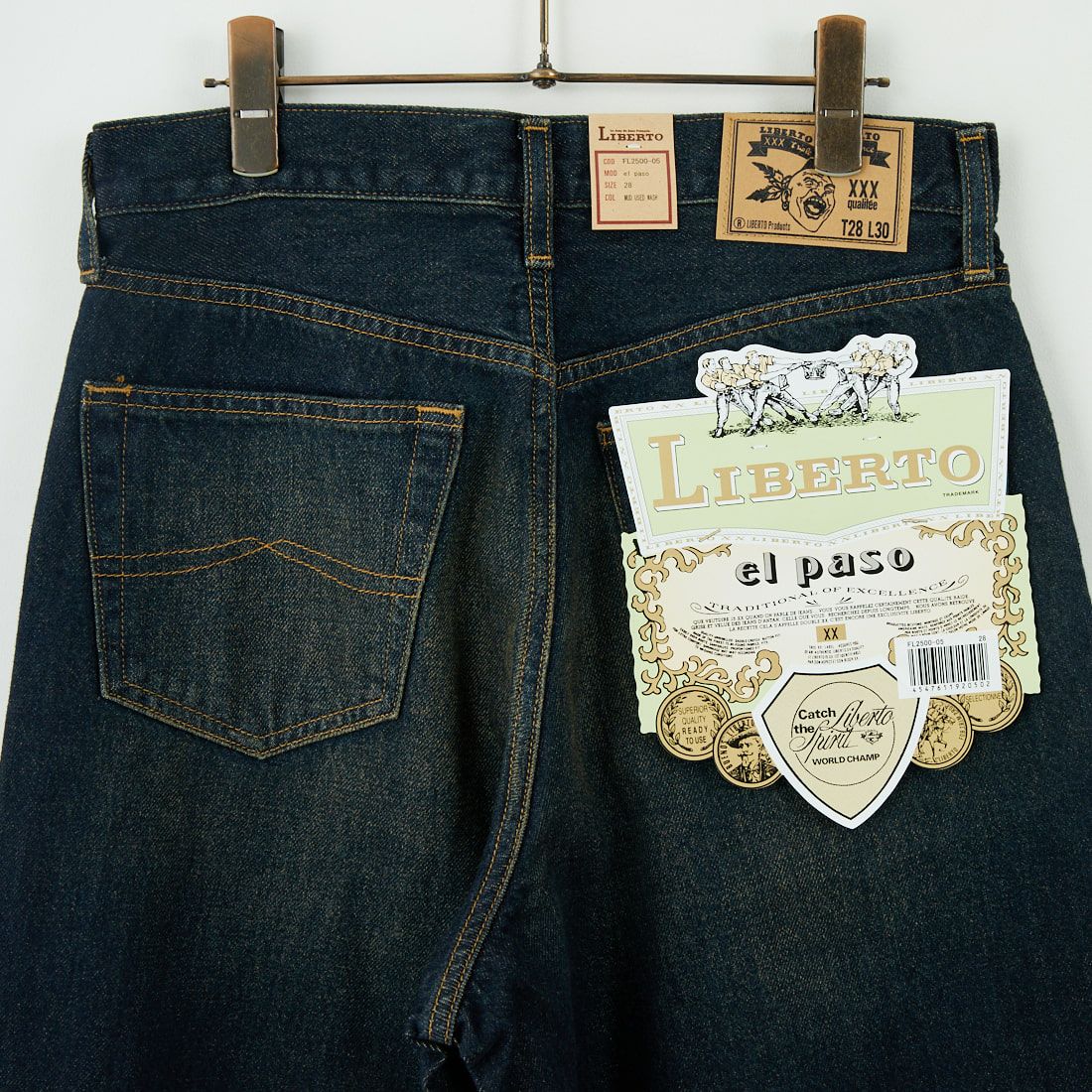 LIBERTO[リベルト]のEL PASO ワイドバギーデニム。ヒップをたっぷりとゆとりを持たせ、ボリューム感はそのまま裾まで直線的な極太バギーデニム。初めて穿いた時から穿き込んだような風合いで、オープンエンド素材特有の質感と色落ち感が楽しめます。通年活躍できる生地感で、ラフなスタイリングからきれいめな雰囲気まで幅広く対応する1本です。
