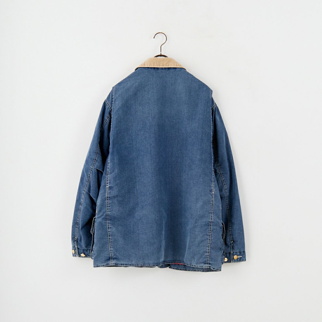 インディゴデニムを使用したワークテイストのフィールドコート。表地はほどよい厚みのあるデニム生地、裏地には鮮やかなレッドのキルティング中綿を施し、防寒性と通気性を両立しています。襟元にはコーデュロイ素材をあしらい、クラシックなハンティングジャケットのディテールを踏襲。フロントにはジップ付きチェストポケットと大容量の2層構造のフラップポケットが配され、実用性も抜群です。武骨さと品格を兼ね備えたデザインは、タウンユースからキャンプシーンまで対応する万能な一着です。