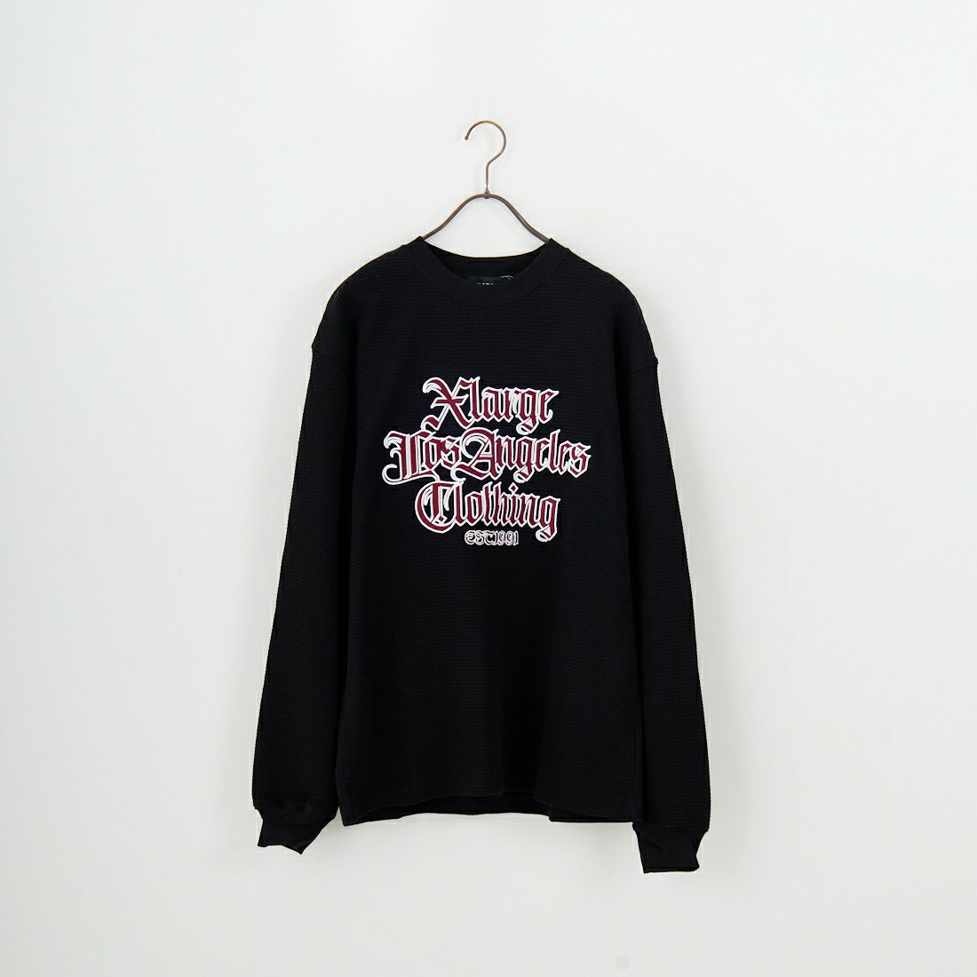 リラックスした雰囲気を漂わせるサーマル素材を使用したロングスリーブトップス。凹凸のある編地が柔らかく肌に馴染み、通気性と保温性を兼ね備えた快適な着心地を実現します。胸元には存在感のあるオールドイングリッシュ調のロゴをプリントし、シンプルながらもストリートムードを強調。ベーシックなシルエットは一枚での着用はもちろん、シャツやジャケットのインナーとしてもスタイリングしやすい万能アイテムです。デニムやカーゴパンツと合わせれば王道のカジュアルスタイルに、ワイドパンツと合わせれば今らしい抜け感のあるコーディネートに。シーズンを問わずワードローブに取り入れやすく、レイヤード次第で長く活躍します。