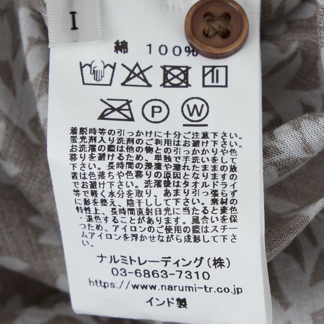 • アンティーク調の花柄が目を引くフレンチスリーブシャツ。どこかレトロな雰囲気を感じさせながら、甘さを抑えたクラシカルな柄と落ち着いた配色で大人っぽく仕上げています。光に当たるとほんのり透け感があり、軽やかで涼しげな着心地も魅力。裾に向かってふんわり広がるAラインシルエットに加え、胸元のさりげないギャザーが女性らしい柔らかな印象を演出します。フレンチスリーブが腕周りをやさしくカバーし、やや小ぶりなレギュラーカラーで顔周りはすっきりとした印象に。肩の切り替えを無くしたデザインでなだらかなショルダーラインを描き、身幅にゆとりを持たせたシルエットがバランスよく着用できます。フロントを開けて羽織りとしても活躍し、同柄のワイドイージーパンツとのセットアップスタイルも楽しめる一着。軽やかで通気性に優れたコットン100%素材を使用し、春夏シーズンに取り入れやすいアイテムです。