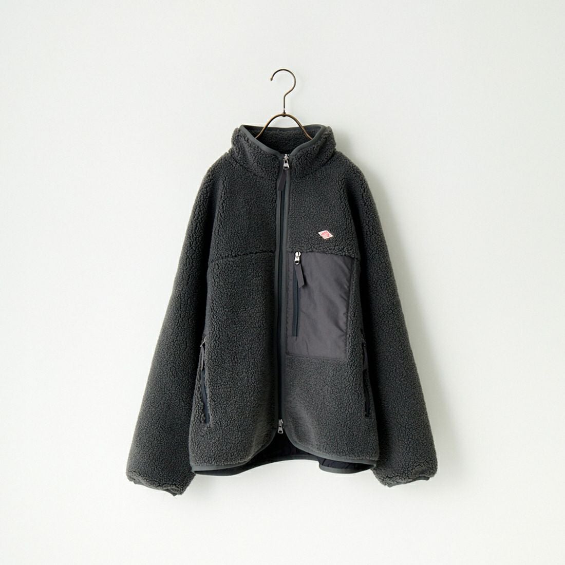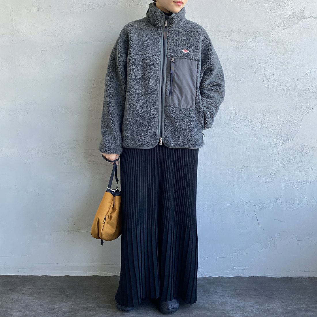 表地には軽さと柔らかさが特徴の、DANTONのオリジナルのライトボアを採用し、裏地には風を通しにくいリップストップナイロンを採用したインサレーションボアジャケット。さらに、表地と裏地の間には特殊な中綿を入れることで軽量ながら高い保温性を確保。両サイドのポケットはハンドウォーマー仕様、ウインドフラップを備え、袖と裾にフィットするリブを採用するなど、防寒性にこだわった作りが特徴です。ライトな着用感と一枚でサマになるシルエットで、デイリーに活躍すること間違いなしのアイテムです。