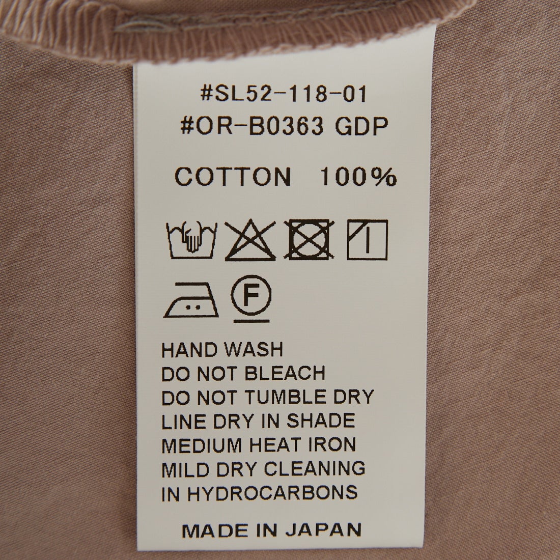 オーバーサイズの開襟衿の半袖のシャツ。製品染めを施した後、あえてプレスを施さずシワのままに、雰囲気のあるシャツに仕上げられています。一部強撚糸を使用した40番手のポプリン素材に、近江晒加工を施した素材を製品染めしており、製品染めならではの製品のパッカリング感が特徴。男女お揃いでも着用できるユニセックス展開です。ベーシックな色合いで様々なコーディネートにマッチする万能な一枚となっています。