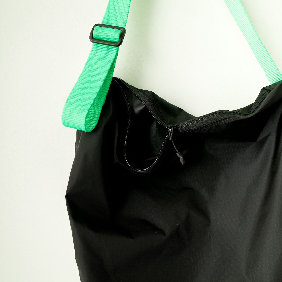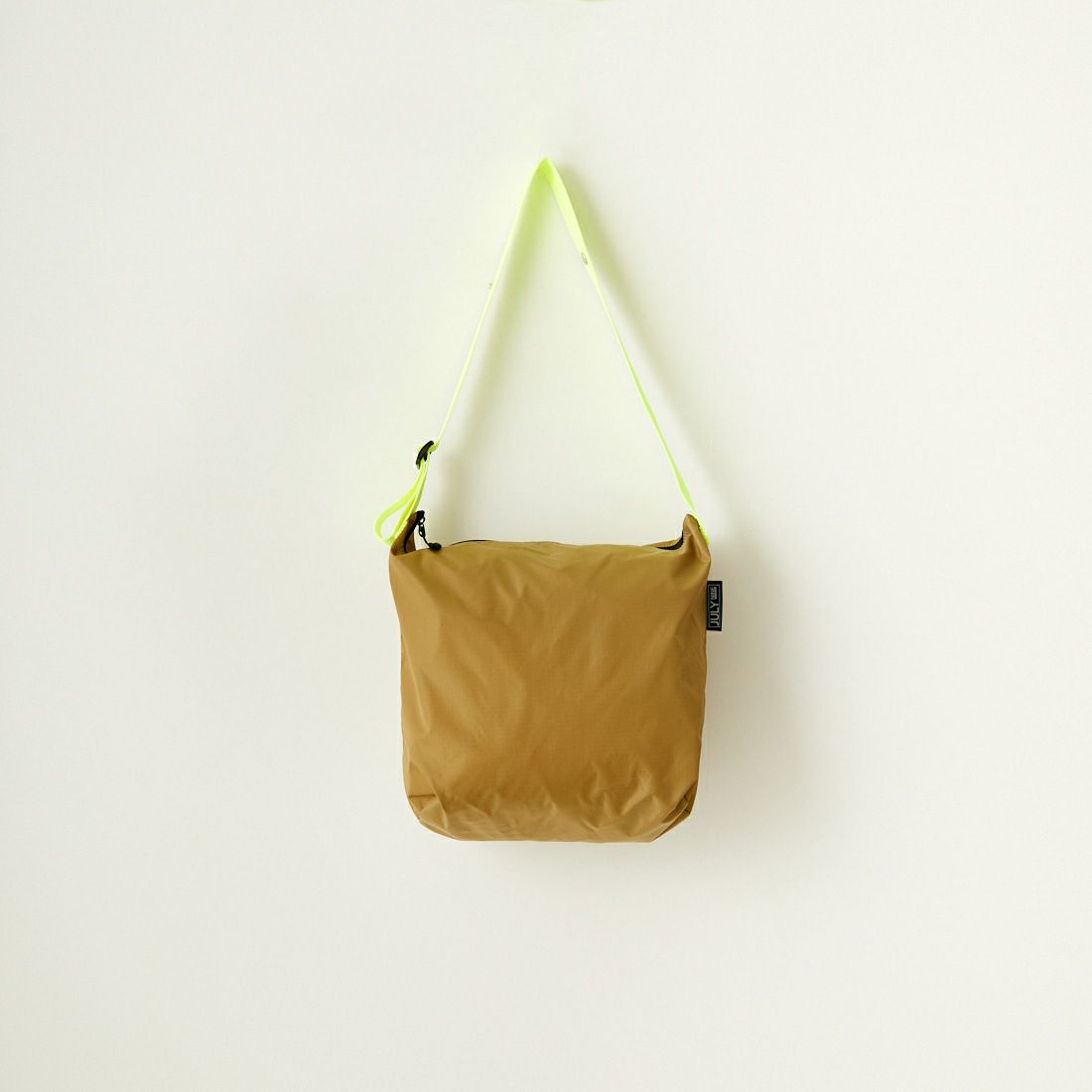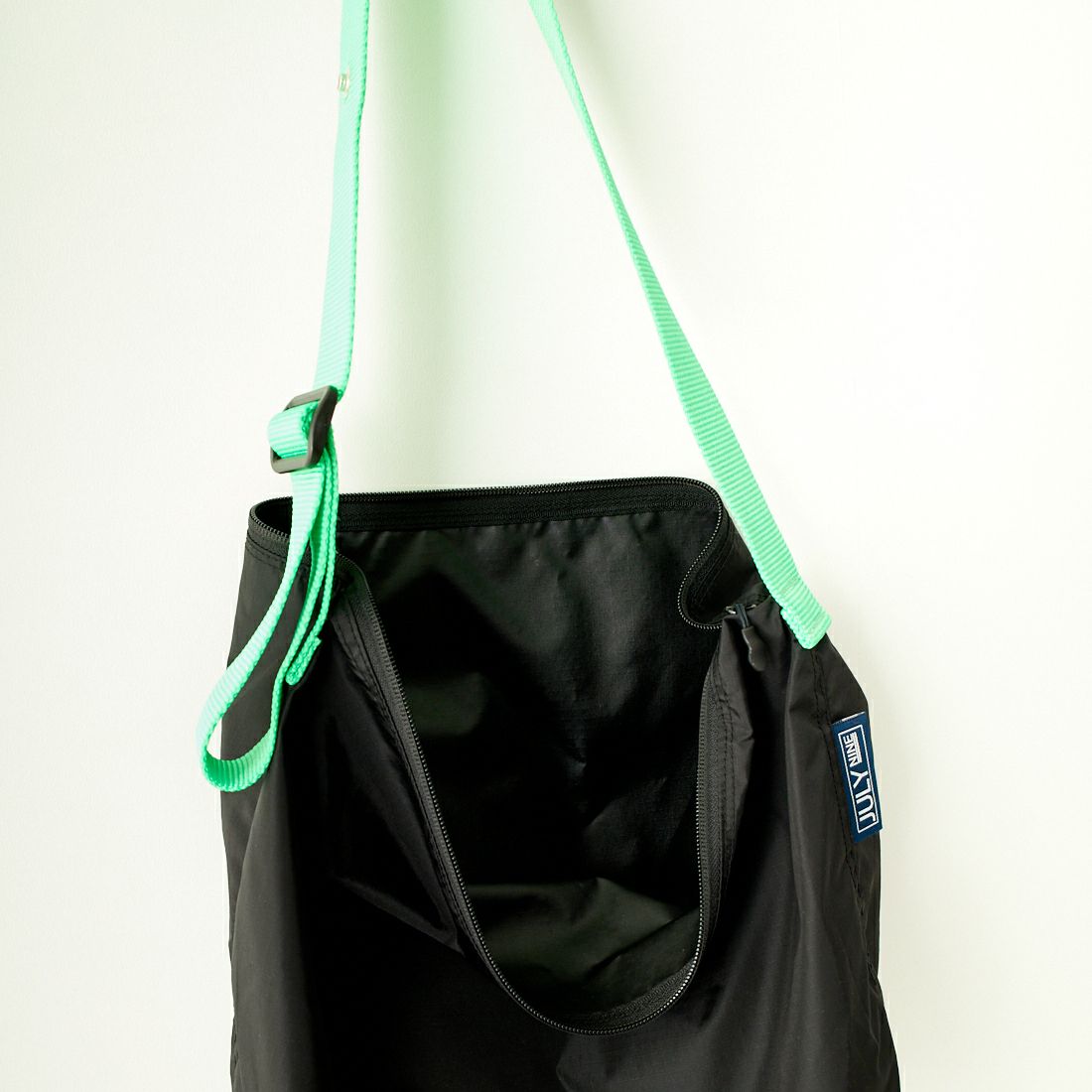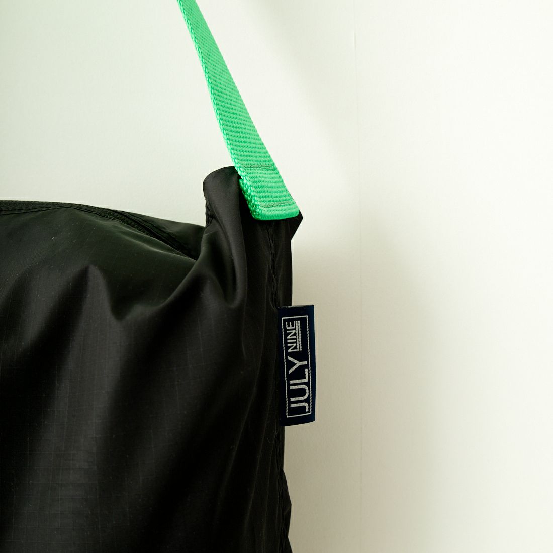 JULY NINE[ジュライナイン]の別注 SEQUEL ナイロンショルダーバッグ。色鮮やかなストラップとボディの配色デザインが魅力の別注ショルダーバッグ。軽量で丈夫なリップストップナイロン素材を使用し、やかなネオンカラーのストラップが目を惹くキャッチーな配色デザインが特徴です。ジップ付きの間口は広めになっており、中身を取り出しやすい仕様になっています。肩に負担がかかりにくい幅広のショルダーストラップは、ベルト部分で長さ調節が可能。折りたたんでストラップを巻くことでコンパクトに収納でき、メインバッグとしてはもちろん、サブバッグとしても持ち運べるので、幅広いシーンで重宝すること間違いなしのアイテムです。