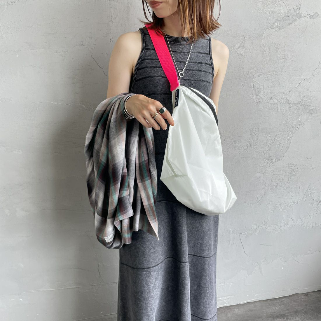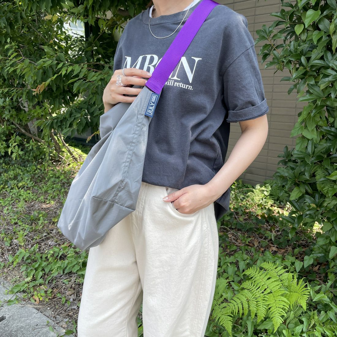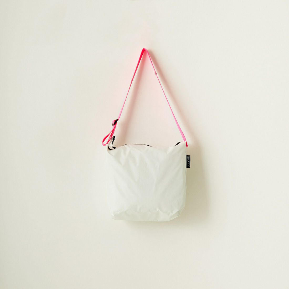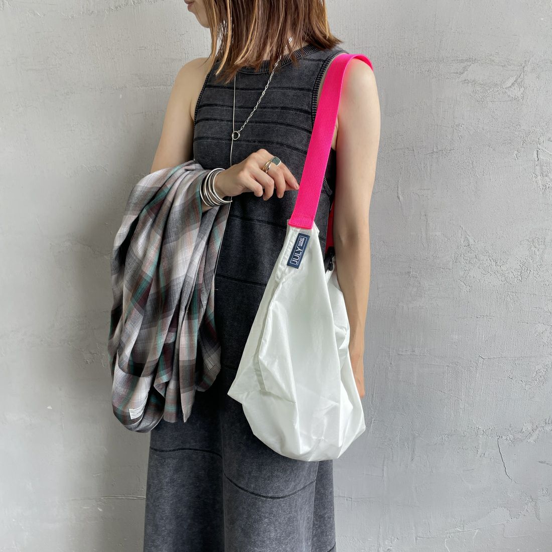 JULY NINE[ジュライナイン]の別注 SEQUEL ナイロンショルダーバッグ。色鮮やかなストラップとボディの配色デザインが魅力の別注ショルダーバッグ。軽量で丈夫なリップストップナイロン素材を使用し、やかなネオンカラーのストラップが目を惹くキャッチーな配色デザインが特徴です。ジップ付きの間口は広めになっており、中身を取り出しやすい仕様になっています。肩に負担がかかりにくい幅広のショルダーストラップは、ベルト部分で長さ調節が可能。折りたたんでストラップを巻くことでコンパクトに収納でき、メインバッグとしてはもちろん、サブバッグとしても持ち運べるので、幅広いシーンで重宝すること間違いなしのアイテムです。