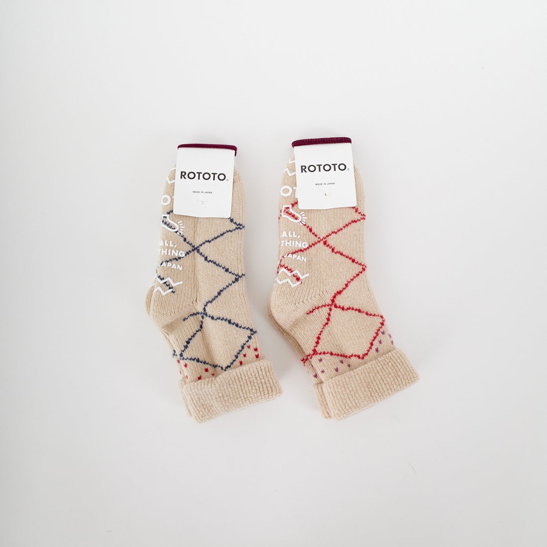 メリノラムウールを贅沢に使用し、漁師用ソックスを編むローゲージの編み機で仕上げた肉厚のルームソックス。モロッコ北部のベルベル民族が織る伝統的なラグ「BENI OUARAIN(ベニワレン)」から着想を得たデザインで、温かみのある表情が魅力です。繊維が細かくやさしい肌あたりのラムウールと、保温性の高いパイル地が足元をしっかり包み込み、快適な履き心地を叶えます。自分用にはもちろん、冬の贈りものとしてもおすすめの一足です。 ※乾燥機のご使用は縮みの原因となりますのでお避け下さい。