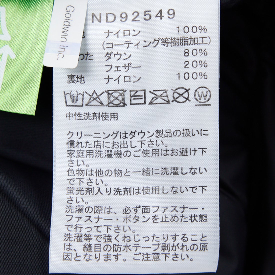 • 素材表地 ナイロン(コーティング等樹脂加工) 100% 中わた ダウン 80% フェザー 20% 裏地 ナイロン 100%