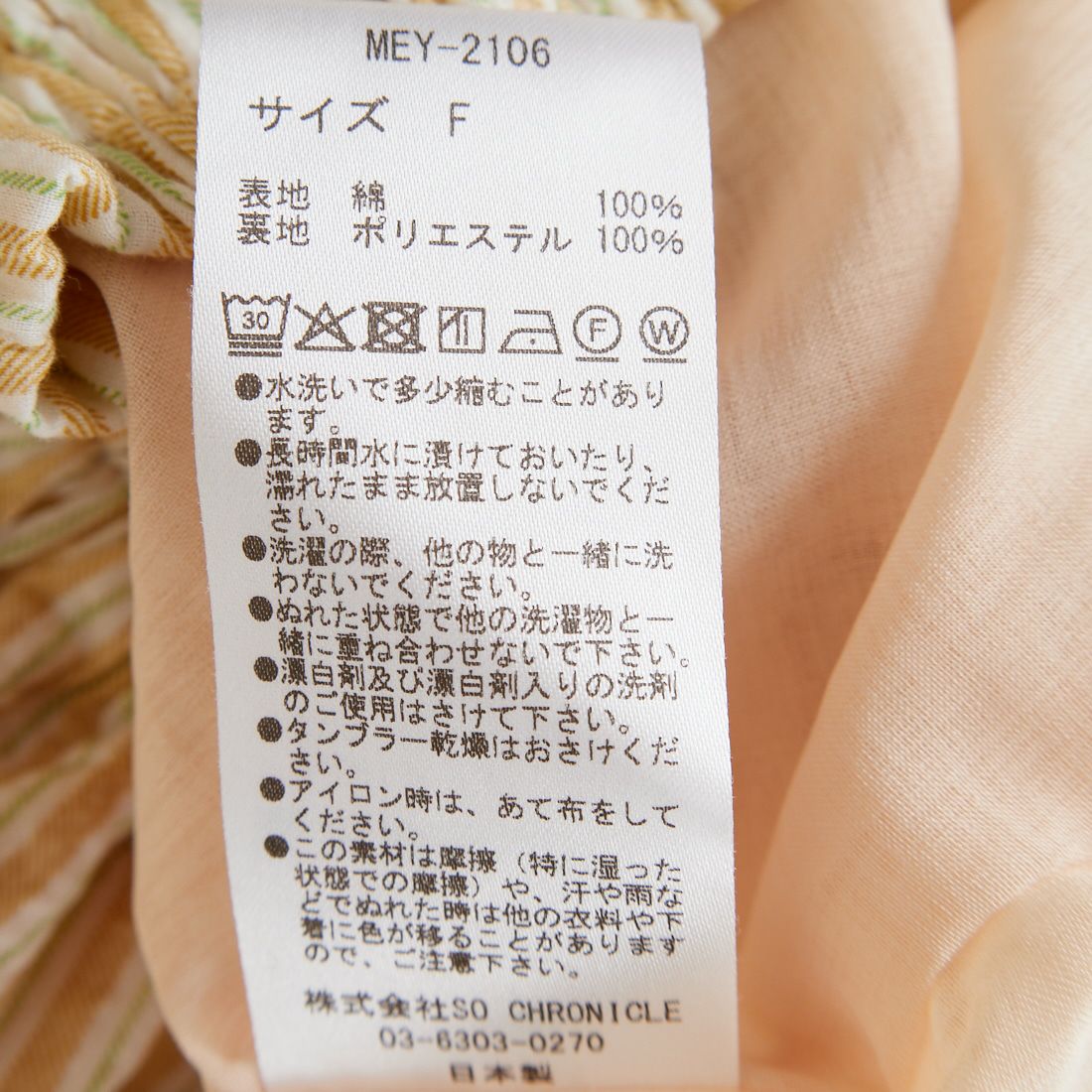 軽やかなコットン100%素材を使用し、ナチュラルな風合いと肌触りの良さが魅力のイージーパンツ。ウエストはゴム仕様で、リラックスした穿き心地を実現。程よいワイドシルエットが脚のラインを美しく見せ、動きやすさも兼ね備えています。独自の凹凸とシワ加工により、暑い季節でも肌離れが良く、シワを気にせず着用可能です。爽やかなストライプ柄が、夏の装いに彩りを添えます。シンプルなTシャツやノースリーブと合わせれば、カジュアルながらも上品なスタイルに。同素材のノースリーブトップス(MEY-2107)と組み合わせれば、オールインワンのような統一感のあるコーディネートが完成します。