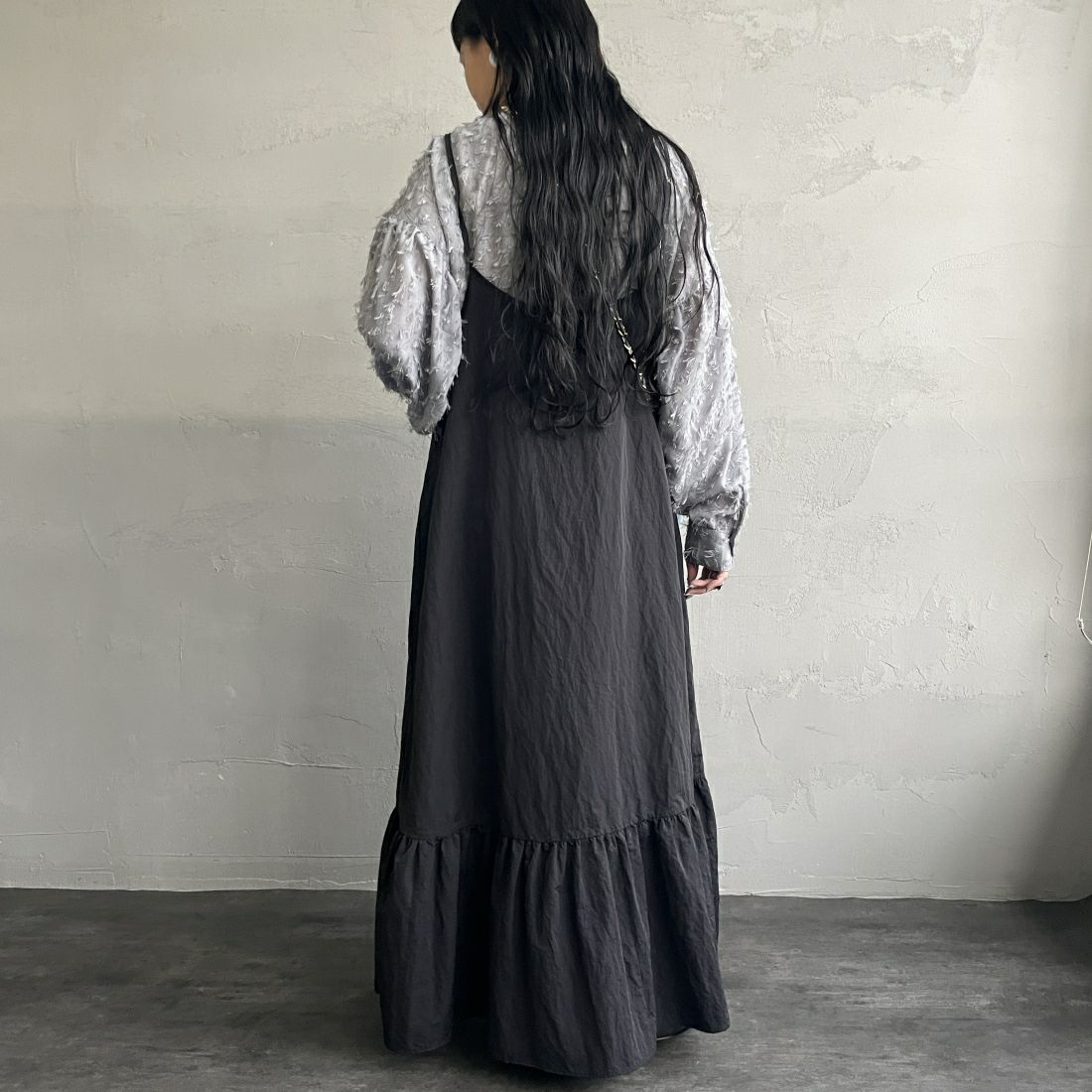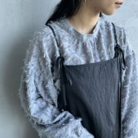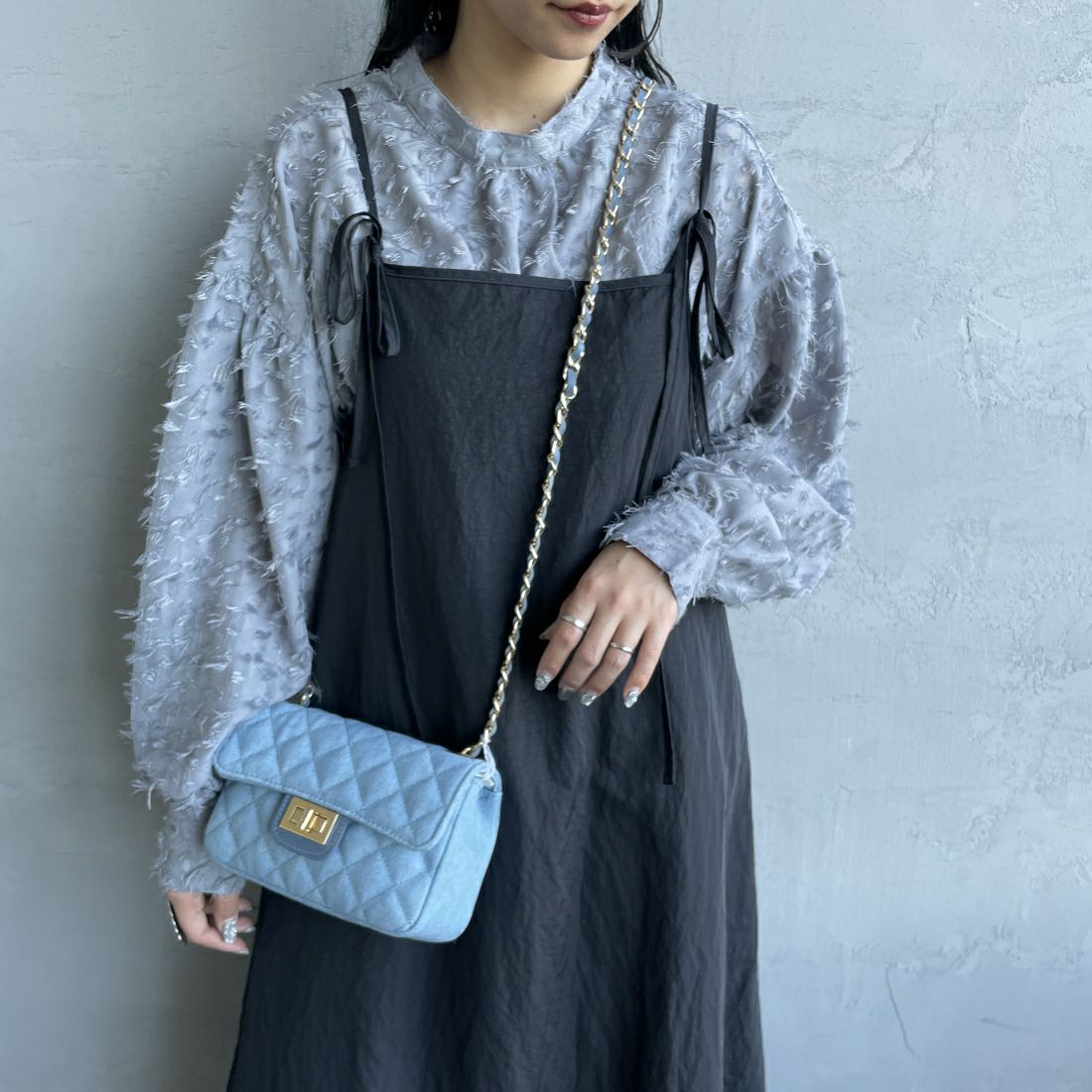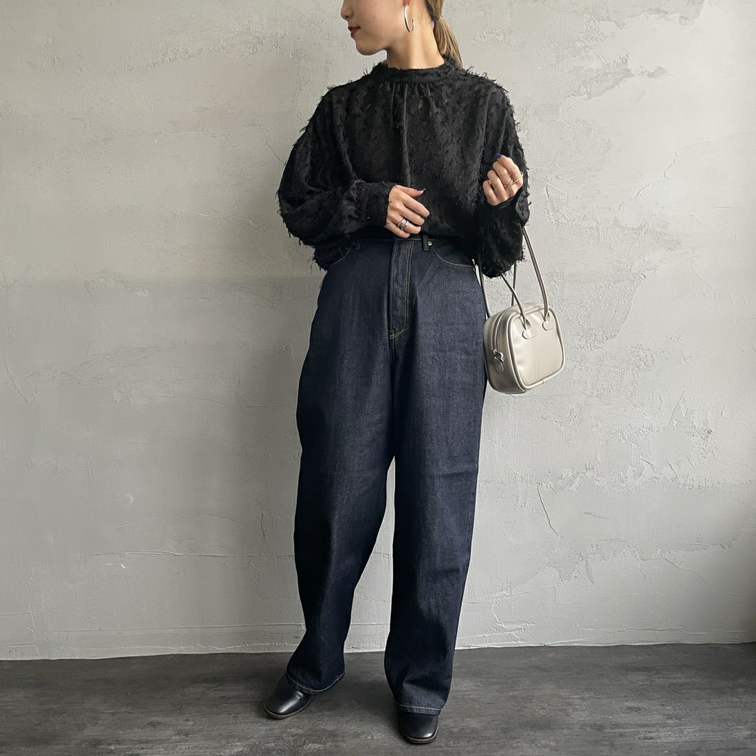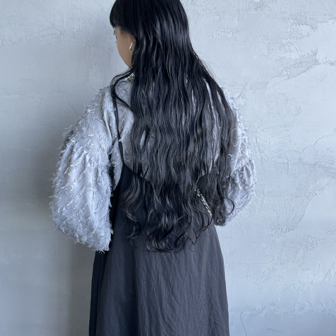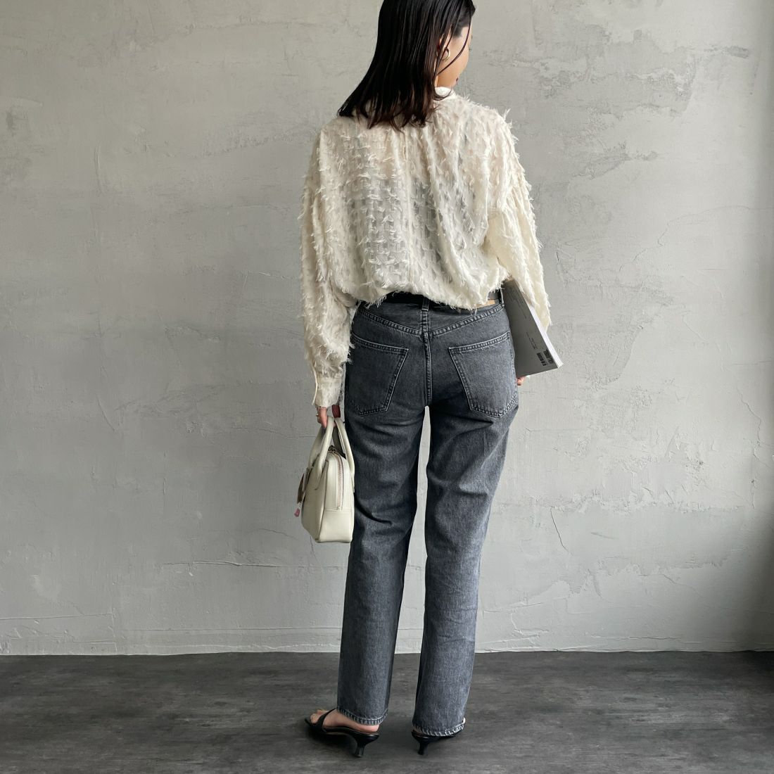 By/m[バイエム]のジャガードフリンジ フェザーブラウス。繊細なフリンジ加工が施されたカットジャガード生地を使用。柔らかなシアー感が女性らしさを惹き立てる、今シーズン一着は持っておきたいトレンドアイテムです。コンパクト過ぎず、身幅に程良くゆとりを持たせたルーズシルエット。着丈にほんのりと前後差を付け、後ろはヒップが隠れる長め丈に。同素材を使用したジャガードフリンジスカート(品番:23142061)とのセットアップスタイルもおすすめです。