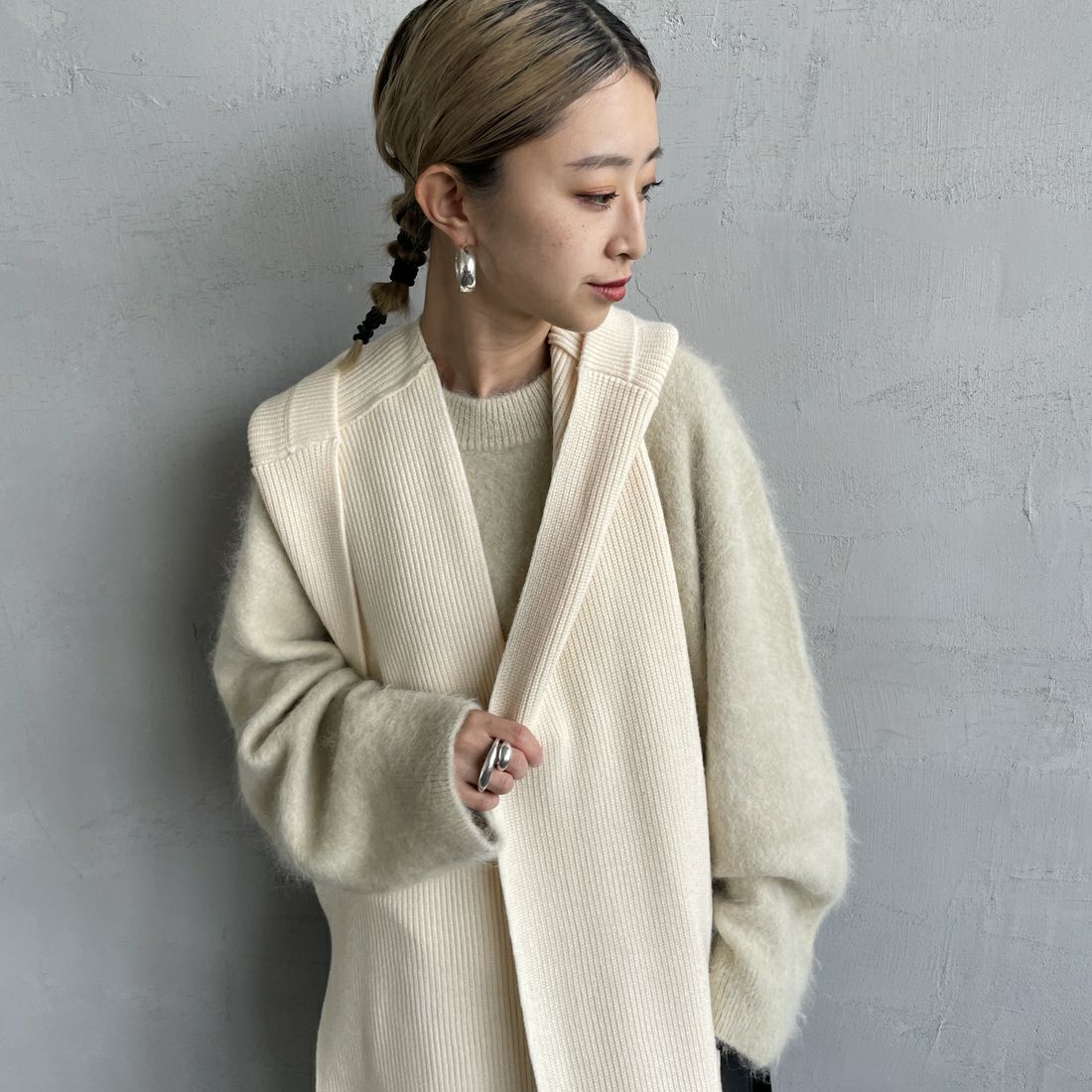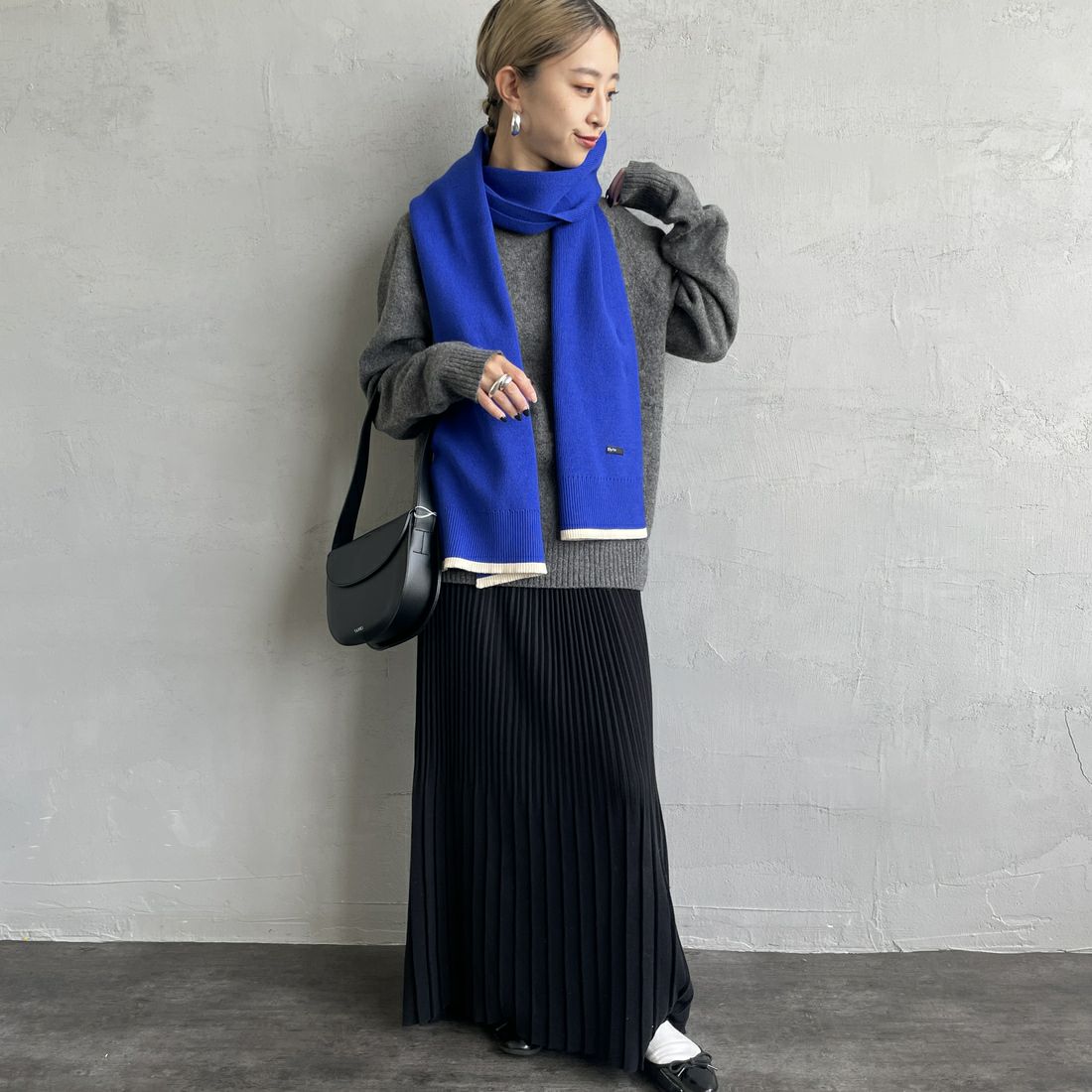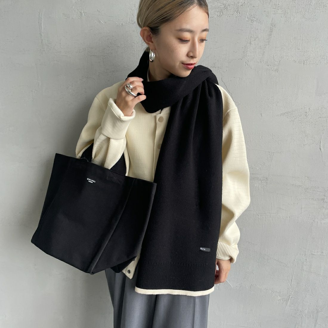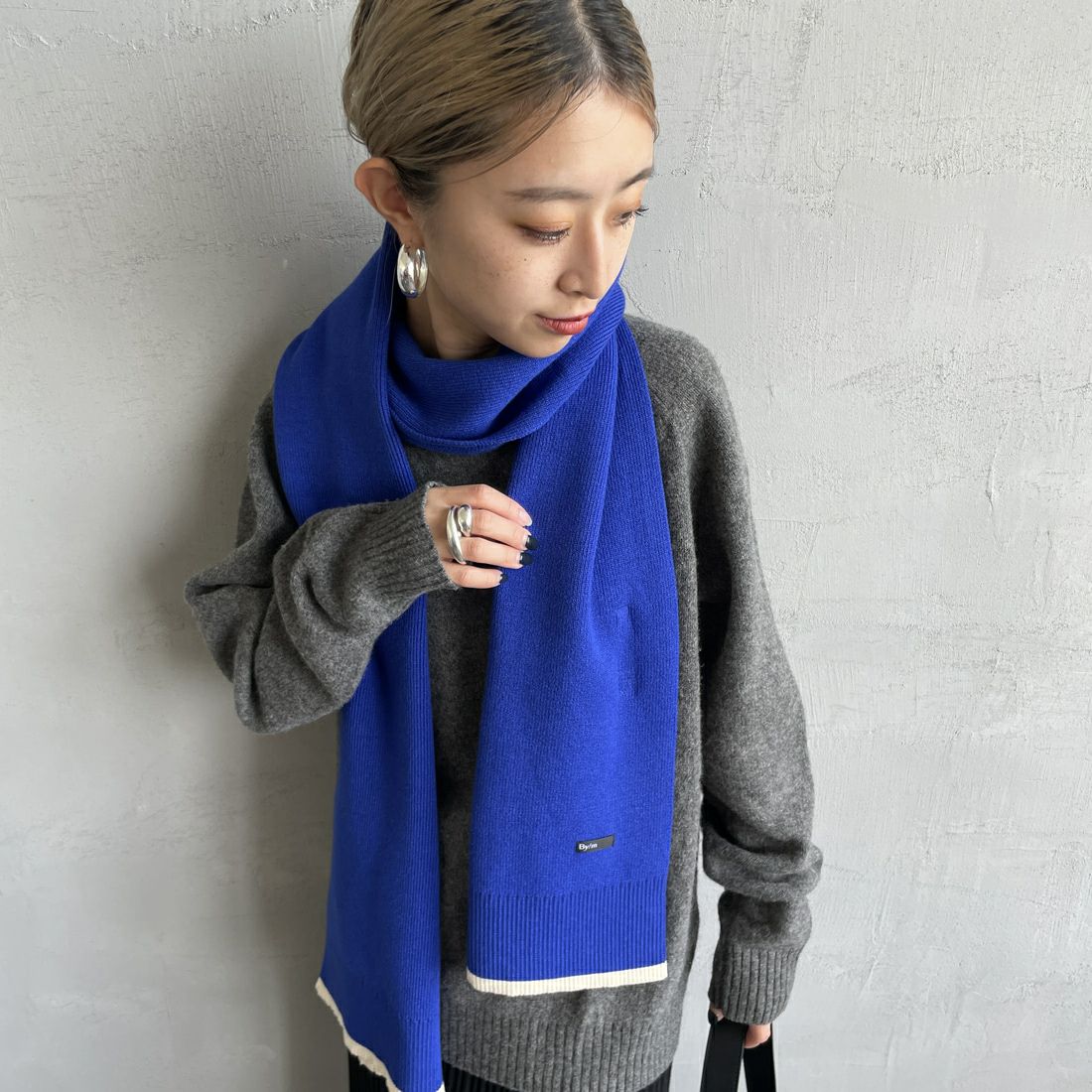 By/m[バイエム]のバイカラーマフラー。配色ラインのコントラストが目を惹くバイカラーマフラー。トーンが暗くなりがちな秋冬の装いのポイントになる、アクセサリー感覚で使えるトレンドライクなデザインが魅力的。チクチクしない柔らかな肌触りと、ふんわりと優しいスポンディッシュな着け心地が特徴で、シーズンムードを盛り上げてくれる、見た目も暖かなアイテムです。しっかりと長さがあるので、様々な着け方のアレンジが楽しめます。