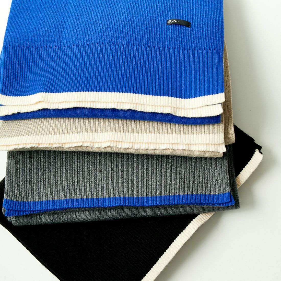 By/m[バイエム]のバイカラーマフラー。配色ラインのコントラストが目を惹くバイカラーマフラー。トーンが暗くなりがちな秋冬の装いのポイントになる、アクセサリー感覚で使えるトレンドライクなデザインが魅力的。チクチクしない柔らかな肌触りと、ふんわりと優しいスポンディッシュな着け心地が特徴で、シーズンムードを盛り上げてくれる、見た目も暖かなアイテムです。しっかりと長さがあるので、様々な着け方のアレンジが楽しめます。