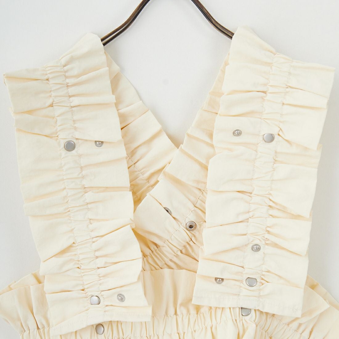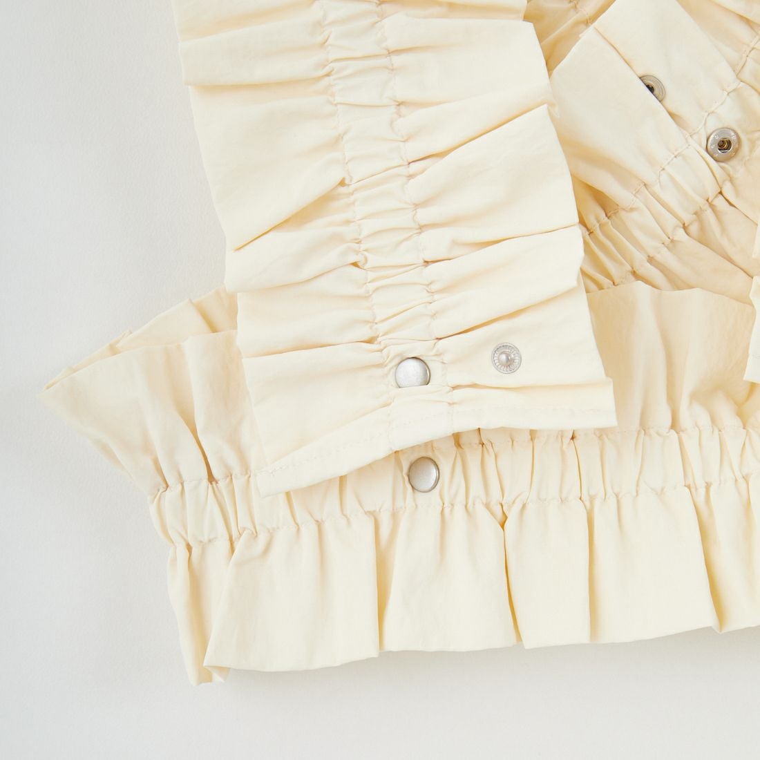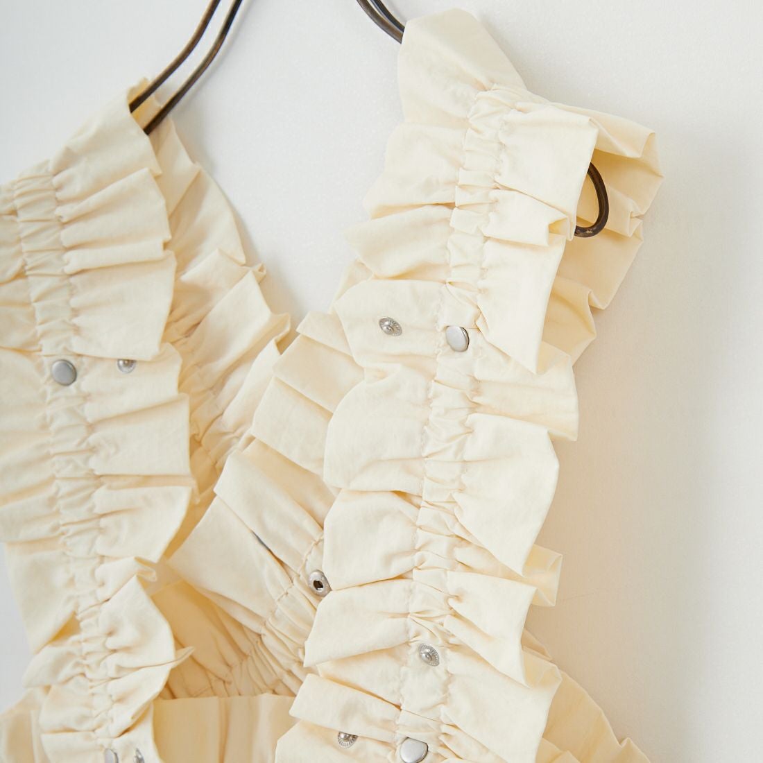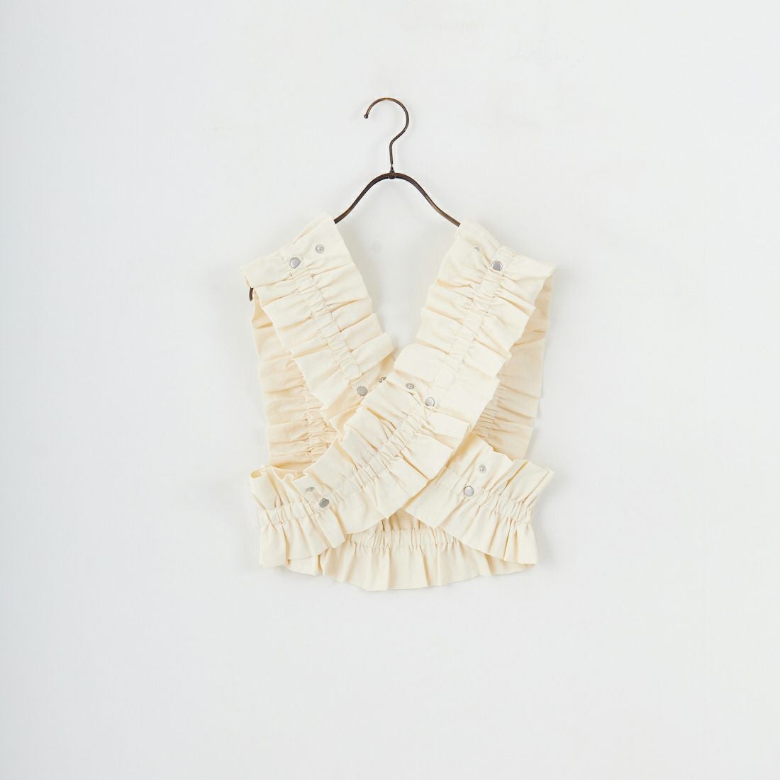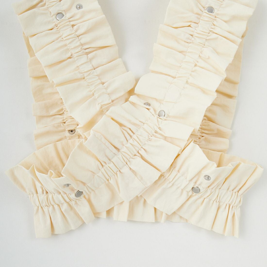 nenom(ネノム)のモデルとしてもお馴染みのUjichan(@ujichannn)によるプロデュースアイテムが登場。シルバーのドットボタンがアクセントになったギャザーベストは、着こなしが無限に楽しめるマルチWAY仕様。ビスチェ型やバンドゥ型など、着方によって自由自在にアレンジが可能で、ドットボタンを多めに配しているので、低身長の方から高身長の方まで着用していただけます。伸縮性の高いゴム入りのナイロン100%生地を使用。優れた撥水性と天然素材のようなナチュラルな風合いを兼ね備えており、スポーティーかつ女性らしいエアリーなスタイリングが完成します。ギャザーフリルが華やかさと立体感をプラスし、いつものスタイルに1点投入するだけで旬な印象に。デイリーはもちろん、パーティーや記念日など特別な日のコーディネートにも活躍。インナー次第でシーズンレスに使える、上級者見え確実な注目アイテムです。