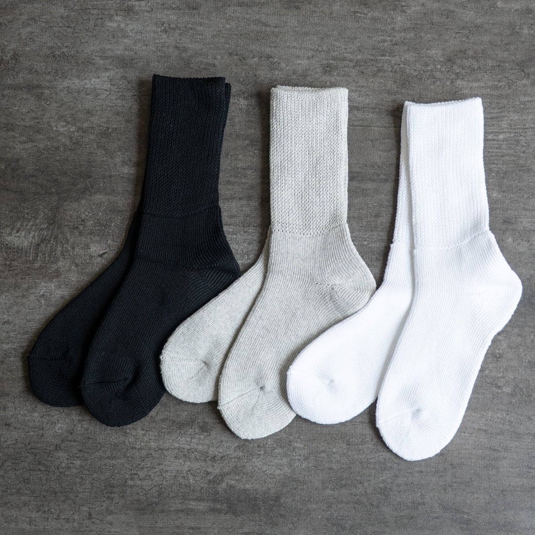 ふんわりとした肉厚パイル編みが特徴のミドルソックス。ガーゼのように柔らかく目の粗い特殊な編み地で仕立てた長めのリブが、締め付け感を抑えながらもずれ落ちにくく、長時間の着用でも痕が残りにくい快適な履き心地を実現。かかとは立体的に編まれ、優れたホールド感を提供します。ボリュームのあるタオルのようなパイル編みが足裏にクッション性を与え、毎日の歩行をサポート。素材にはコシがあり耐久性に優れた双糸の綿100%を使用し、心地よい肌触りと長持ちする品質を両立。カジュアルからスポーツミックス、アウトドアスタイルまで幅広く活躍する一足です。