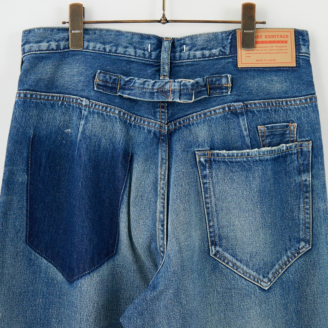 ヴィンテージの趣を醸し出す、セルヴィッチ仕様のワイドテーパードデニム。ハイライズのウエスト設計とゆったりした裾幅が、脚長シルエットを叶え、腰回りもすっきりと見せます。独自のUSED加工「i?Next」を採用し、水や薬品を削減した環境配慮の仕上がり。軽さと適度なハリを持ちながら、穿き込むほど味わい深く変化し、まるで長年愛用されたかのような表情が魅力です。バックにはダックテールやレザーパッチが映える、クラシックなディテールが光ります。時代に左右されない一本として、長く愛用できるデニムです。