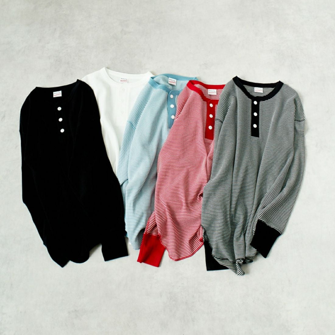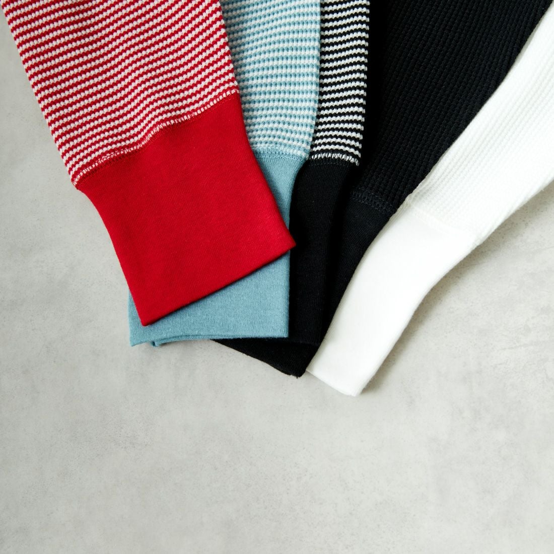 Health knit [ヘルスニット] 別注 ヘンリーネック ワッフルボーダーカットソー [HR2302L005IN-JF]
