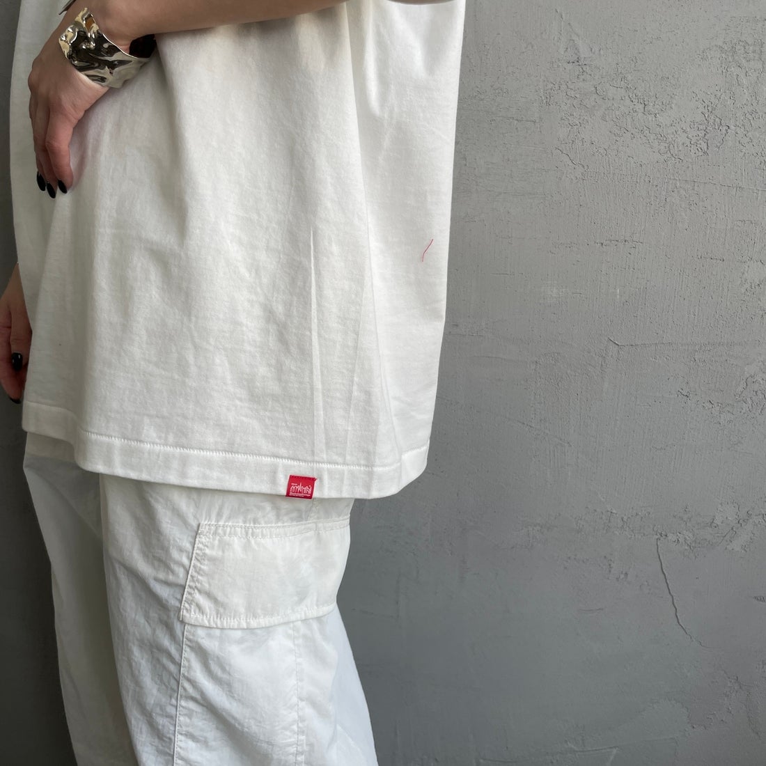 MANHATTAN PORTAGE[マンハッタンポーテージ]のショートスリーブプリントTシャツ。厚手のUSAコットンを使用し、ドライ感とタフな雰囲気を表現したプリントTシャツ。サイズ感はボックス型のリラックスシルエットで、今の空気感を演出。フロントとバックにはシンプルなロゴをプリント。裾にはブランドピスネームをあしらい、クラシックな雰囲気を彷彿させる一着に仕上げています。