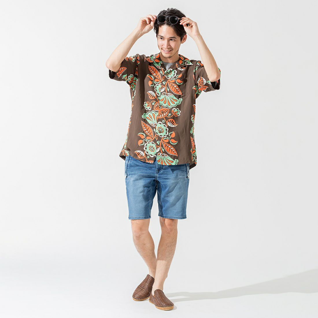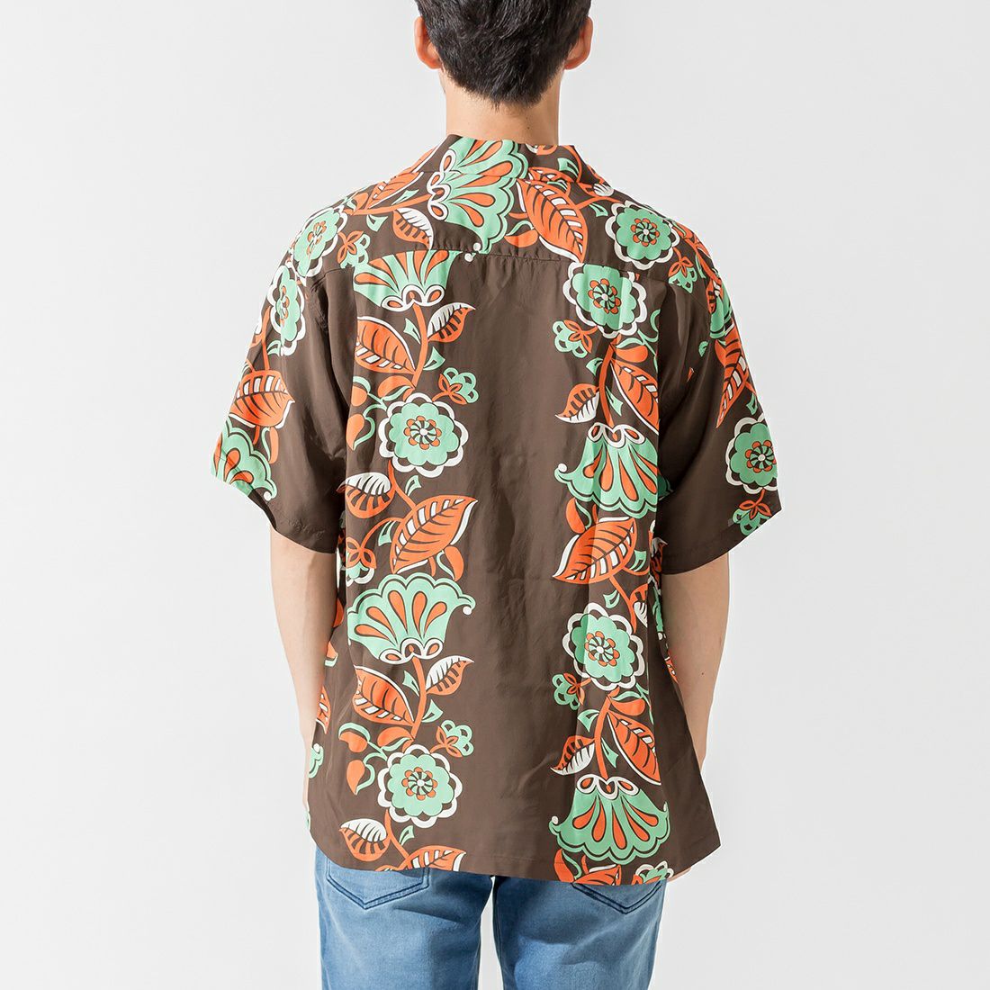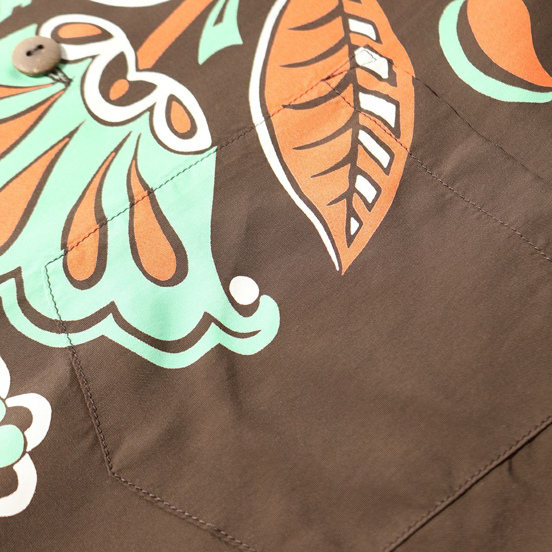 SUN SURF [サンサーフ]のHAWAIIAN IVY レーヨンハワイアンシャツ。1940年代後期に作られたカメハメハ・ガーメント社の作品。抽象的なモチーフのボーダー・パターンはアロハシャツの歴史において初期の頃から登場し、伝統的なデザインとして様々な名作に用いられてきた。この作品もヴィンテージアロハシャツのマーケットでは価値が高く、非常にコレクタブルな一枚。それゆえリクエストも多く、今季の復刻を果たした。