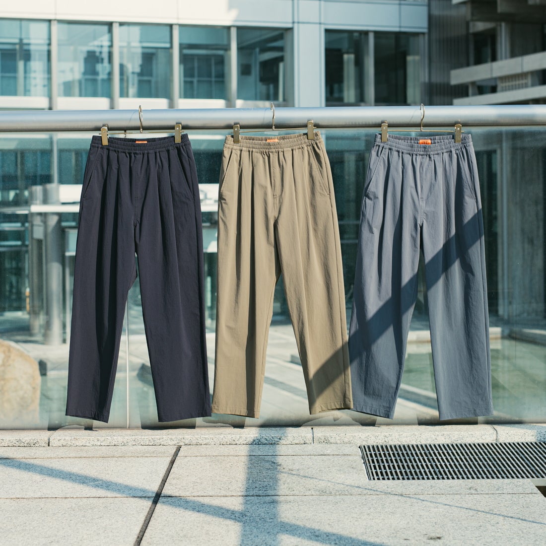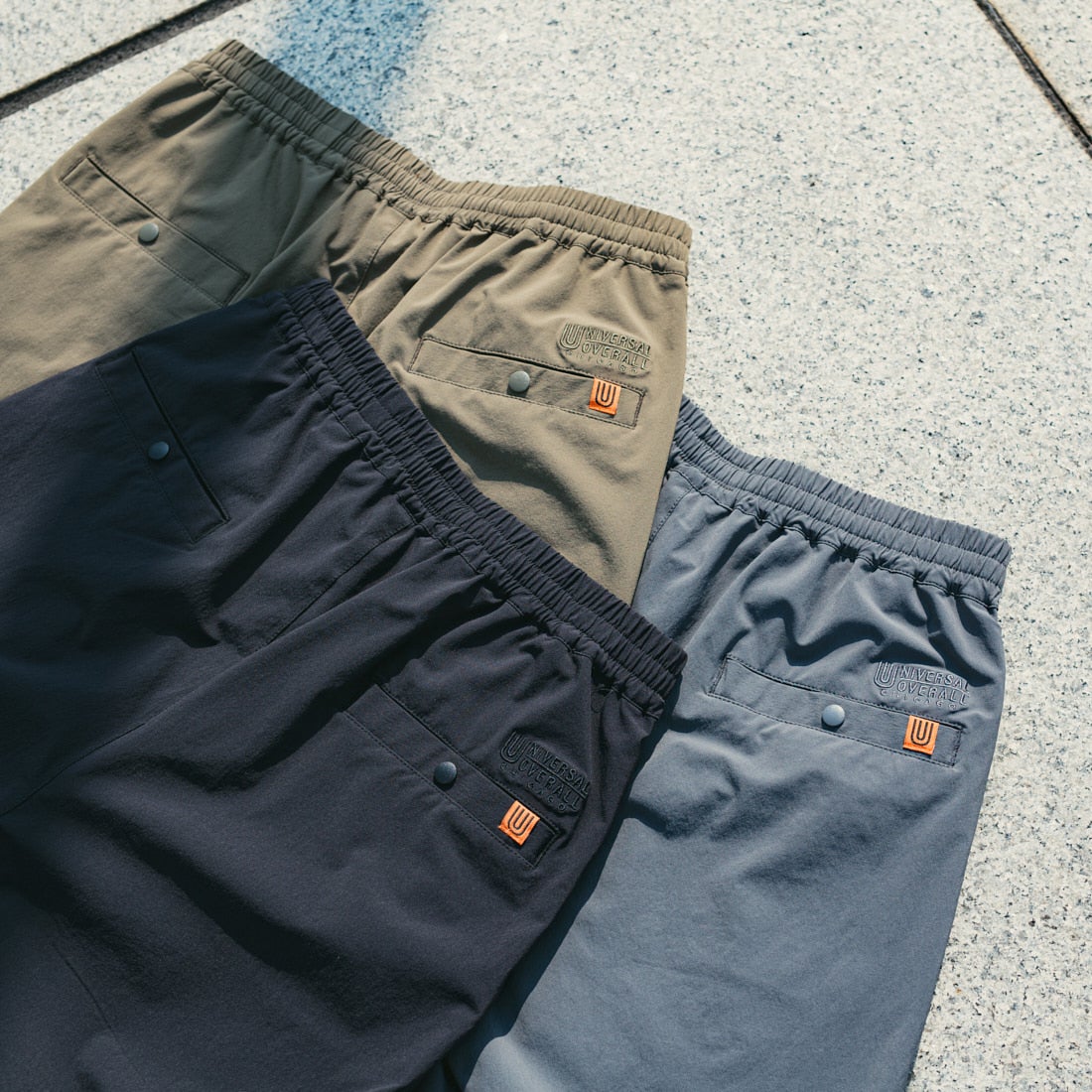 インフルエンサー“anritocamp”として活動されている“anri”さんとUNIVERSAL OVERALL[ユニバーサルオーバーオール]とジーンズファクトリーのコラボレーションモデル。anriさんが普段から愛用されているナイロンパンツをベースに、UNIVERSAL OVERALLとこだわりのデザインで別注。2タックでフロントにボリュームを持たせたテーパードシルエットで、どんな身長の方にも似合うであろう絶妙な丈感になっています。幅を広めに仕立てたウエストゴムを採用しているので、お腹周りの窮屈感が更に軽減され、インした時の見え方も納まりが良いのもポイント。4WAYストレッチナイロンを採用しているため、ストレスフリーな着用感が魅力的。マットな質感が都会的な印象でドライタッチ。薄手の素材なのでオールシーズン、ストレスフリーに着用可能です。きれいめコーデにもすんなりと馴染むアイテムです。。
