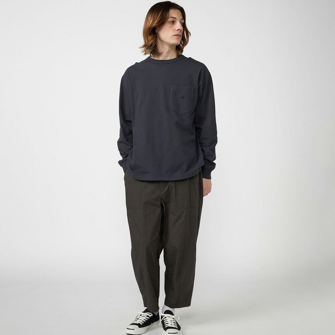 オーガニックコットン100%の8オンス天竺を使用したロングスリーブポケットTシャツ。製品染めによって、着込まれたようなヴィンテージライクな風合いを再現し、洗いざらしでもこなれて見える一枚です。脇に縫い目のないチューブボディ構造で、肌への当たりが柔らかく、ストレスフリーな着心地を実現。胸ポケットの口元に施されたヘリンボーン補強テープや、配色ロゴ刺繍がアクセントに。襟元はバインダー仕様でリブのよれを防ぎ、オーバーサイズシルエットが今どきのリラックス感を演出。男女問わずユニセックスで着用でき、デニムやチノとのカジュアルなスタイリングはもちろん、ジャケットのインナーにも最適です。シーズンレスで重宝する万能カットソーとして、デイリーに活躍すること間違いなしです。