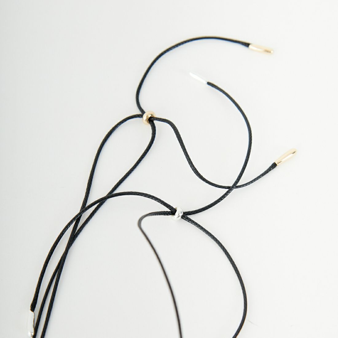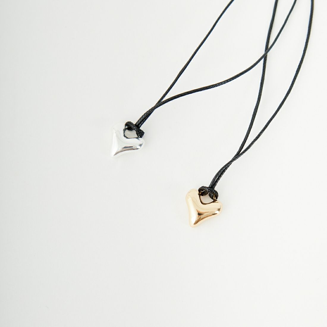 ニュアンスを感じさせる変形ハートのチャームが目を引くコードチョーカー。スライドビーズ付きで着脱や長さ調節が自在、首元にさりげなく個性を添えます。先端のメタルパーツにはブランドらしいこだわりが宿り、リュクスなアクセントに。カラーはシルバーとゴールドの2種展開で、Tシャツやタートルネックなどどんなトップスにもフィットし、シンプルな装いに洗練された印象をプラス。普段使いから特別な日まで活躍するアイテムです。