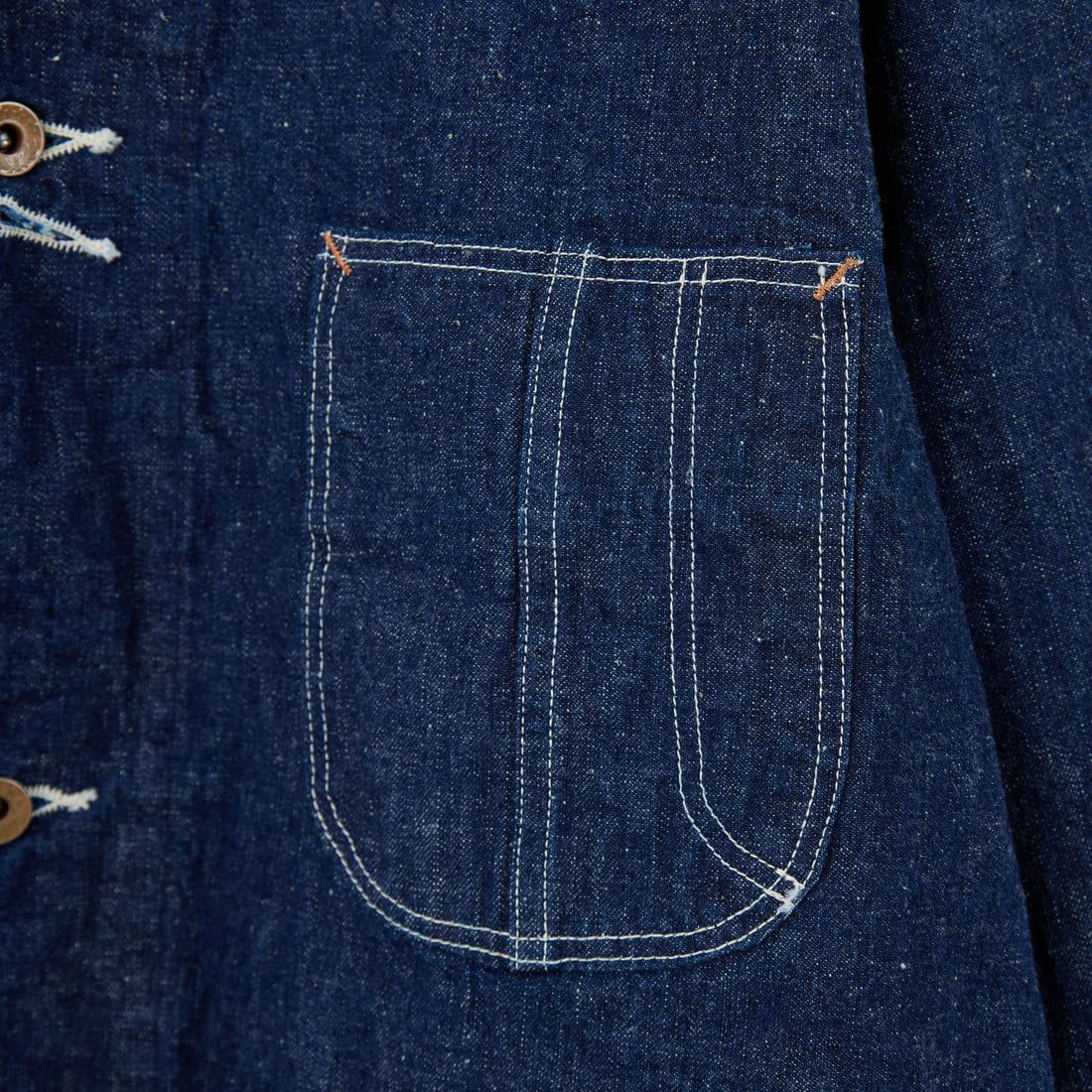 1940年代の大戦期に生まれたシンプルなカバーオールから着想を得た一着。省略されたポケットやステッチ、月桂樹ボタンなど、当時の合理性を反映した無駄のないデザインが特徴です。3つ目のボタンホールは懐中時計チェーン用として、ヴィンテージディテールを忠実に再現。素材にはオリジナルの9オンスセルビッジデニムを使用し、着用と洗濯を繰り返すことで深まる風合いと経年変化を楽しめます。無骨ながらも上品な佇まいは、デニムやチノとの相性も良く、ミリタリーやワークを意識した今季のトレンドスタイルにぴったり。シンプルだからこそ幅広いコーデに溶け込み、長く愛用できる一着です。