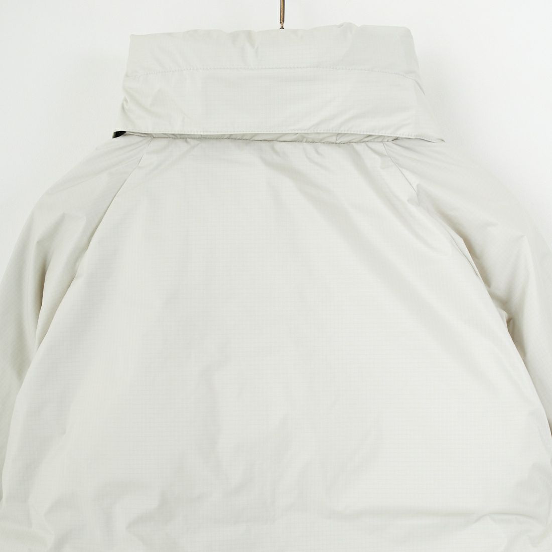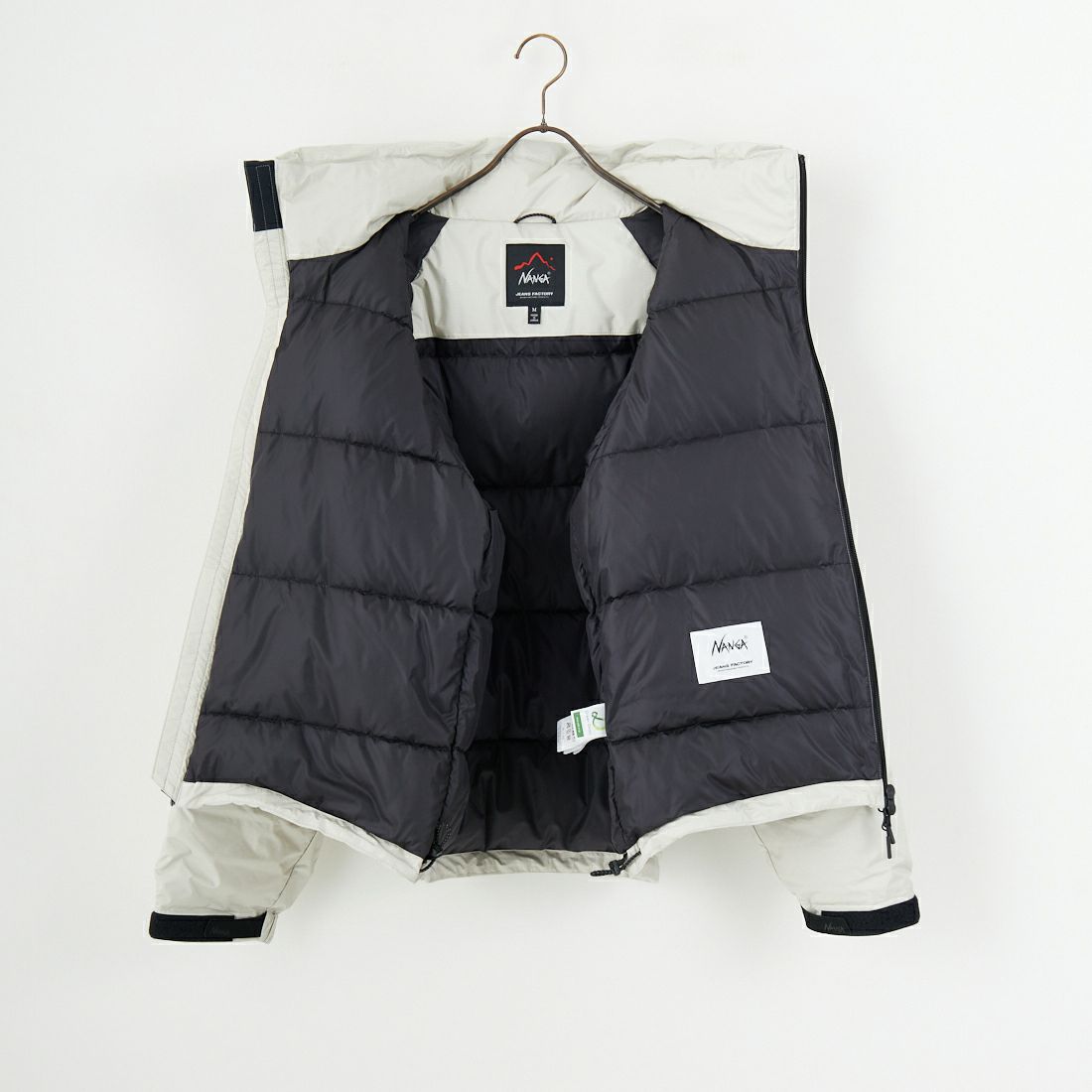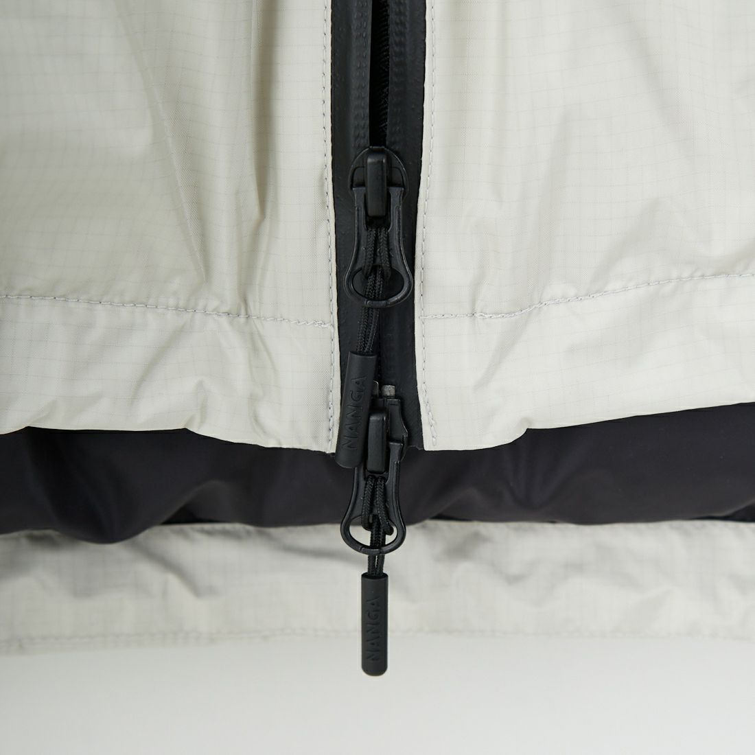 NANGA定番の高防水素材を使用したオーロラダウンを、リラックスフォルムに別注した特別な一着。本格的なアウトドア仕様のディティールと、トレンドライクなワイドシルエットが特徴。高い防水性と透湿性を誇り、フロントジップ、ポケットには雨の侵入を防いでくれるマットな止水ジップを使用しています。中綿にはハイクオリティな760フィルパワーのリサイルダウン「GREEN DOWN」を採用。やや光沢のあるナイロンのボディと胸元のリフレクターロゴが、コーディネートにスポーティなアクセントをプラス。バッグいらずの大容量フロントポケットの内側には起毛素材を採用し、冷えた手を温められるハンドウォーマー仕様に。ミニマルなデザインながら、都会的な雰囲気漂うルックスが魅力のアイテムです。