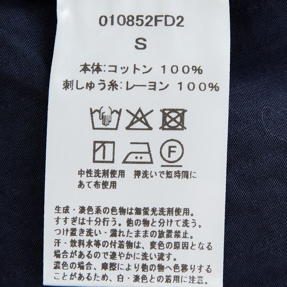 • 素材本体 コットン 100% 刺しゅう糸 レーヨン 100%