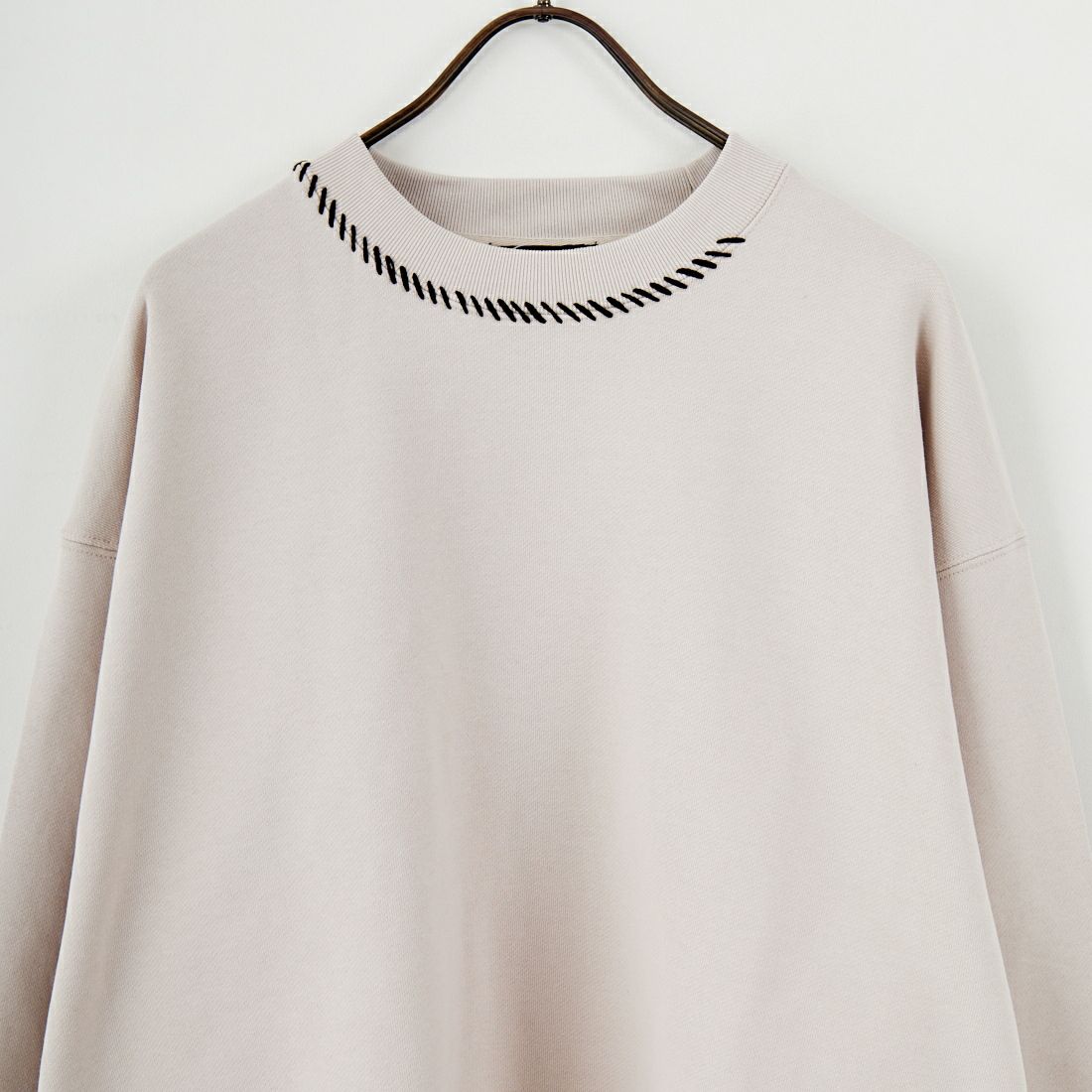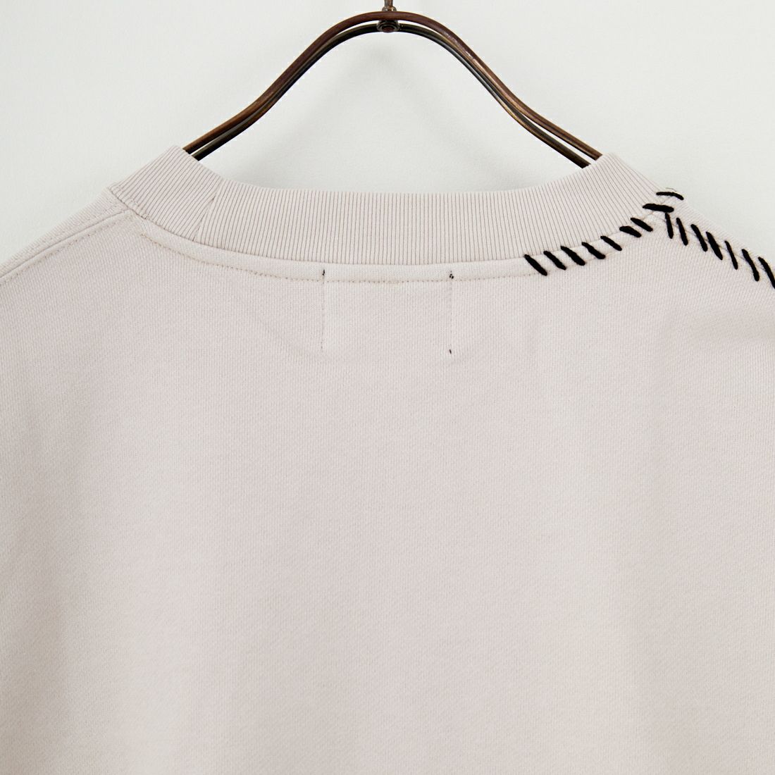 へビーウェイトの裏毛を採用したスウェットプルオーバー。しっかりとした肉厚感と温かみのある風合いが魅力で、シーズンを通して頼れる一枚です。シーム部分には配色のハンド刺繍を施し、シンプルながらクラフト感のある独特の表情をプラス。無駄を省いたデザインに細部のこだわりを散りばめ、リラックス感の中にも上質さを感じられる仕上がりになっています。程よくゆったりとしたシルエットで着心地も快適。デニムやチノパンはもちろん、きれいめボトムと合わせた大人カジュアルにも好相性。1枚で存在感がありながら、アウターのインナーとしても使いやすく、幅広いスタイリングに活躍する万能なアイテムです。