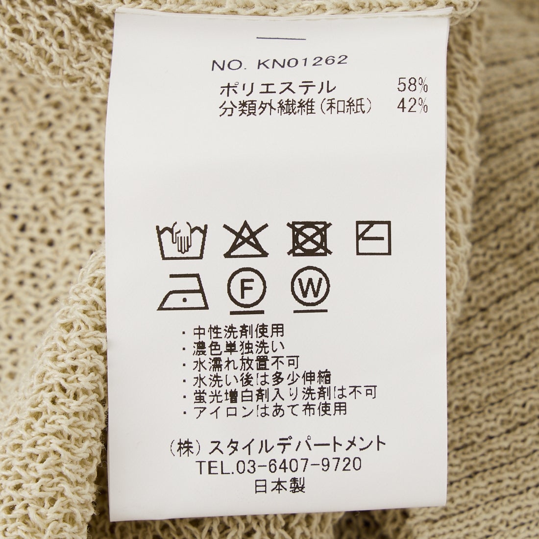 和紙とポリエステルの混紡糸を使用した12Gニットベスト。和紙特有のドライタッチな質感で肌離れが良く、暑い季節でも快適に着用できる一着です。透け感のある軽やかな編み地とバランスの取れたサイズ感にこだわり、夏でも取り入れやすい仕上がりに。レイヤード次第でスタイリングの幅が広がり、シーズンらしい軽やかな着こなしを楽しめます。