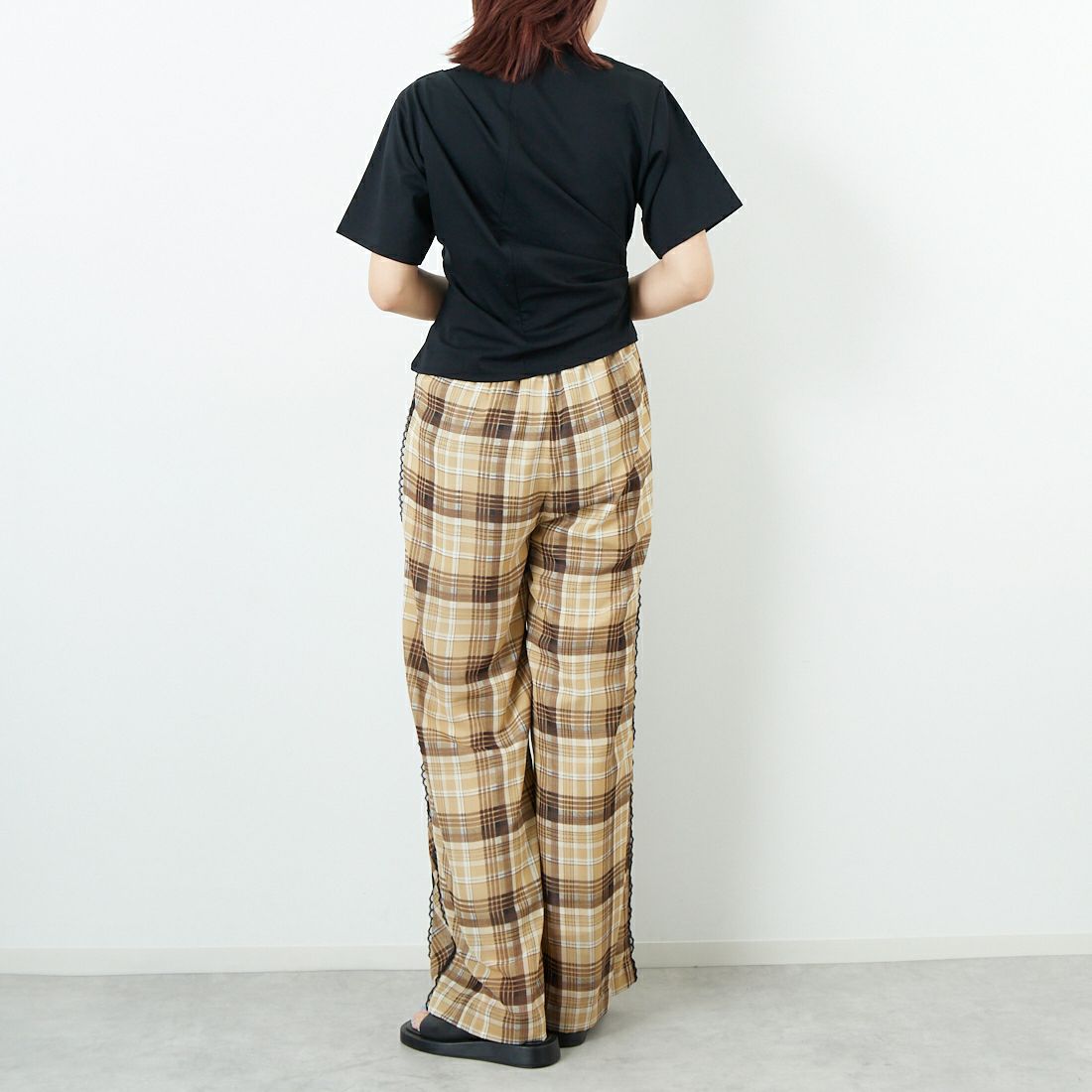《送料無料》 MAISON SPECIAL [メゾンスペシャル] サイドピコレースシアーチェックパンツ [21251465318]