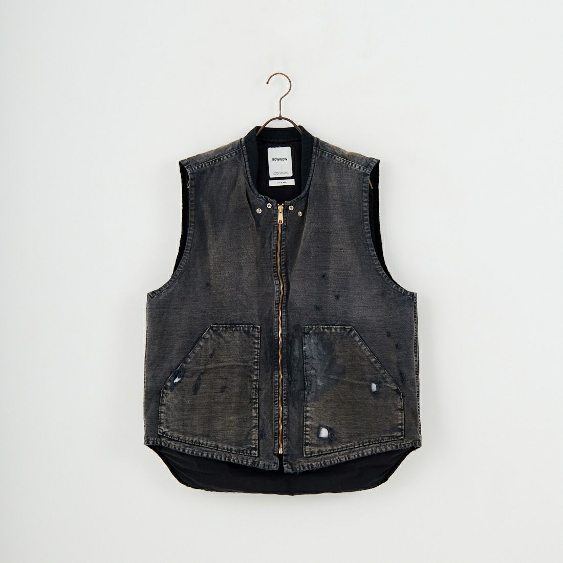 バウワウらしくアタリやフェード、破れの加工が古着より古着なんです。