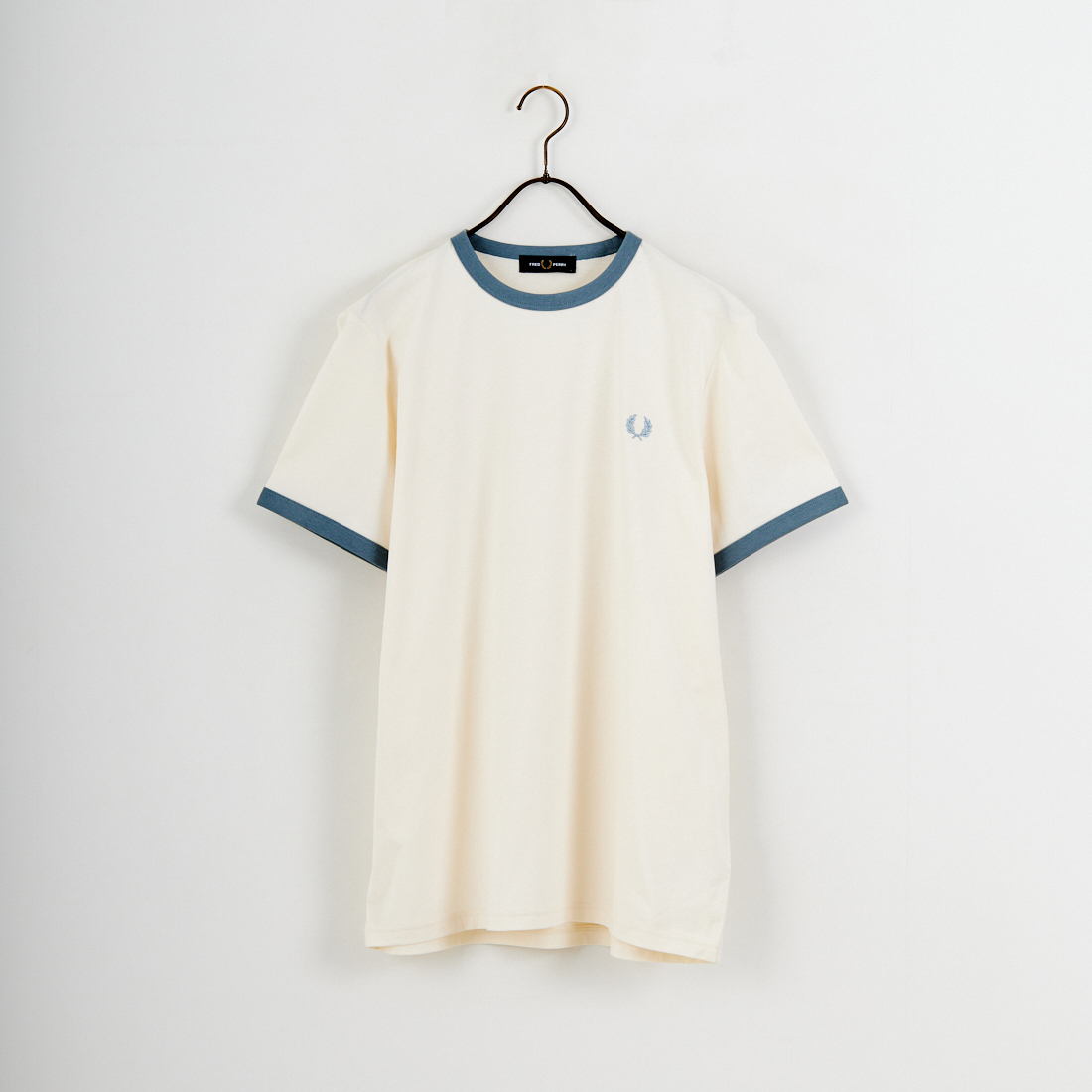 中央)M3519/ワンポイントロゴ刺繍 ショートスリーブ リンガーTシャツ