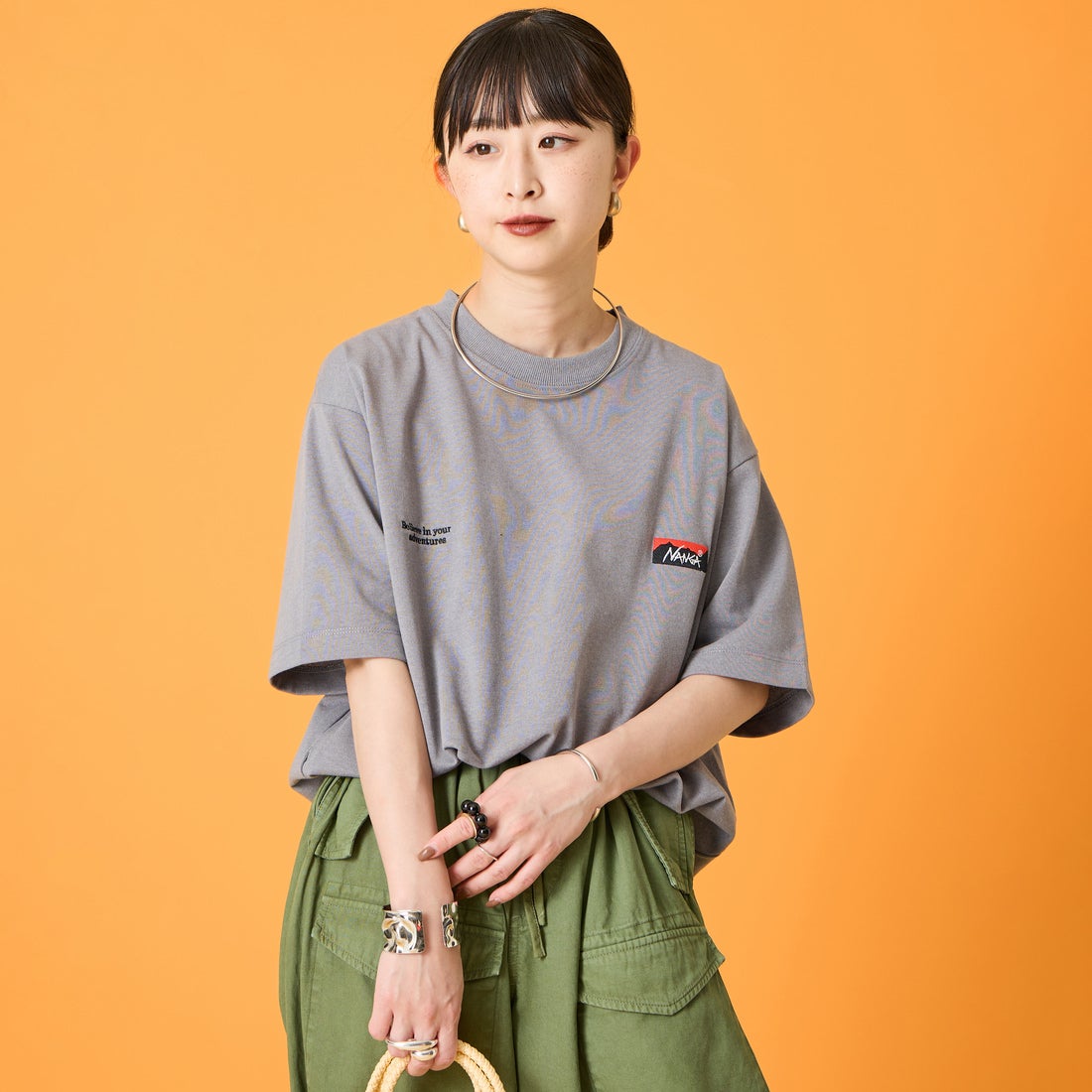 ブランドロゴとスローガンのワンポイント刺繍を配置。