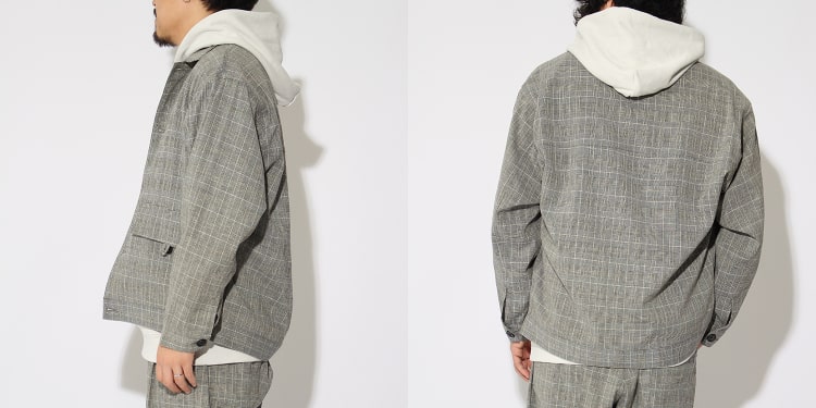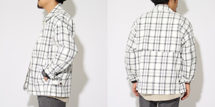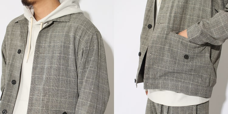 メリハリの控えめなチェック柄なので、落ち着いた印象に。ドロップショルダーとゆとりのあるシルエットがエフォートレスな大人の余裕を感じさせます。ポリエステル、リネン混素材のため、ドライタッチでストレッチ性もあるので、春から夏の暑い時期にも対応。スウェットやデニムと合わせてカジュアルな着こなしも、スラックスやニットなどでキレイめにもマッチします。