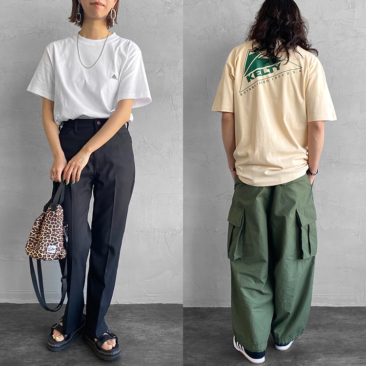 ユニセックスで楽しめるXS~Lまでの幅広いサイズ展開が魅力的。大きめサイズを選んでビッグシルエットでざっくりとコーディネートしても◎もちろんタックインスタイルもサマになります。