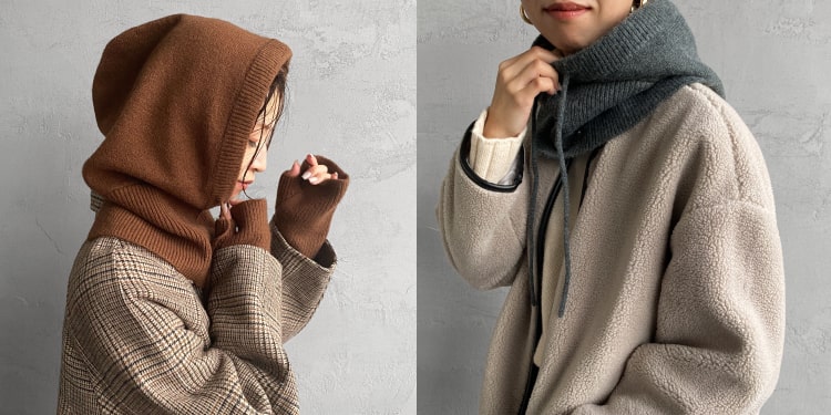 スウェットやライトアウターとのレイヤードが楽しいニットケープも必見!