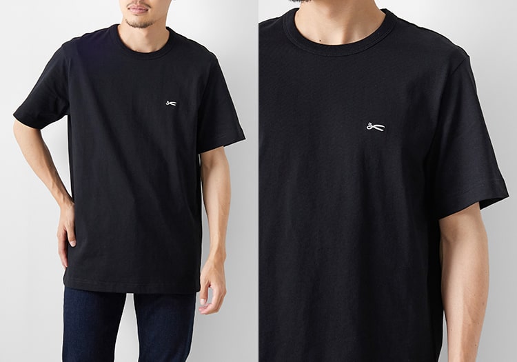 左胸のシザーロゴ刺繍がアクセントになるシンプルなアイテム。ほどよくゆったりしたリラックスシルエットが特徴で、夏場に一枚でキマるTシャツです。