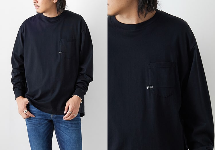 同モデルのロンTも展開。肌触り滑らかで柔らかいコットン生地なので、着心地もバツグン。