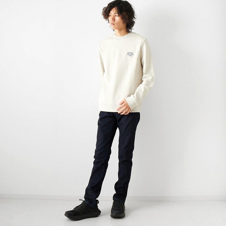 清潔感ある濃紺のインディゴカラーもラインナップ。ベーシックなスウェットと合わせたコーデでも、上質な雰囲気を演出できるのがポイント。