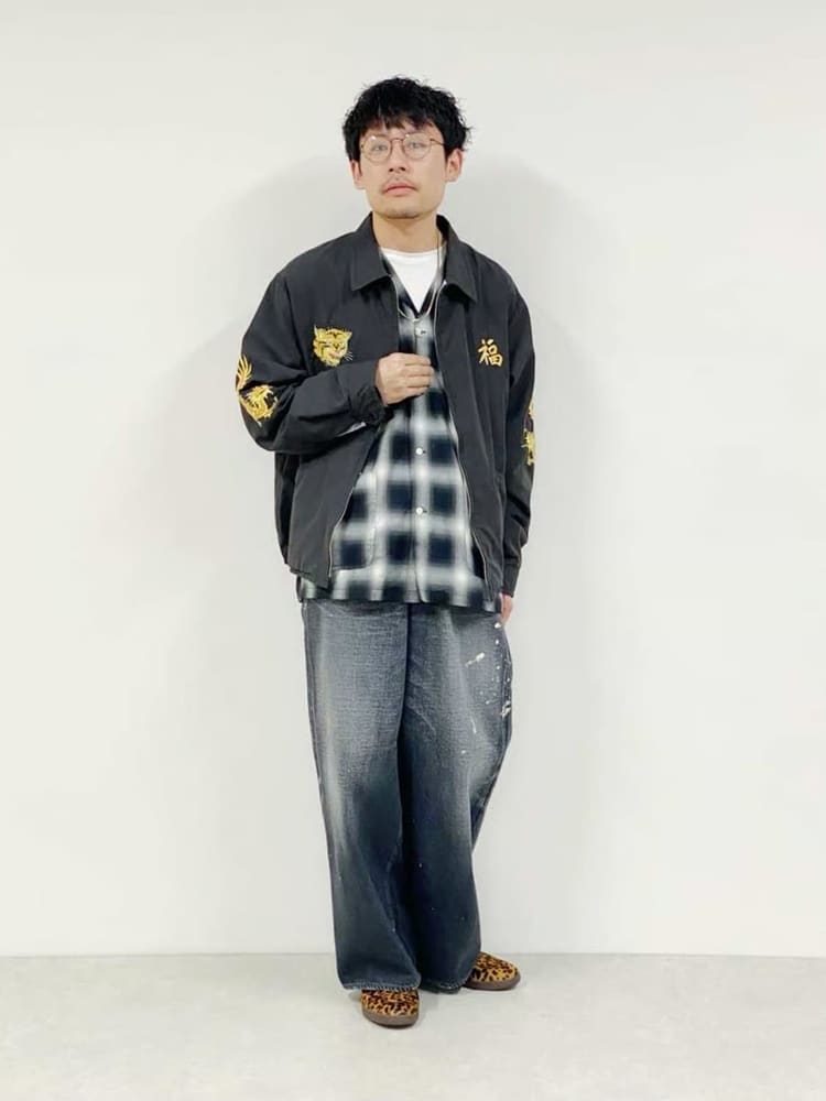 ベトナムジャケットにチェックシャツ、デニムを合わせたヴィンテージスタイル。