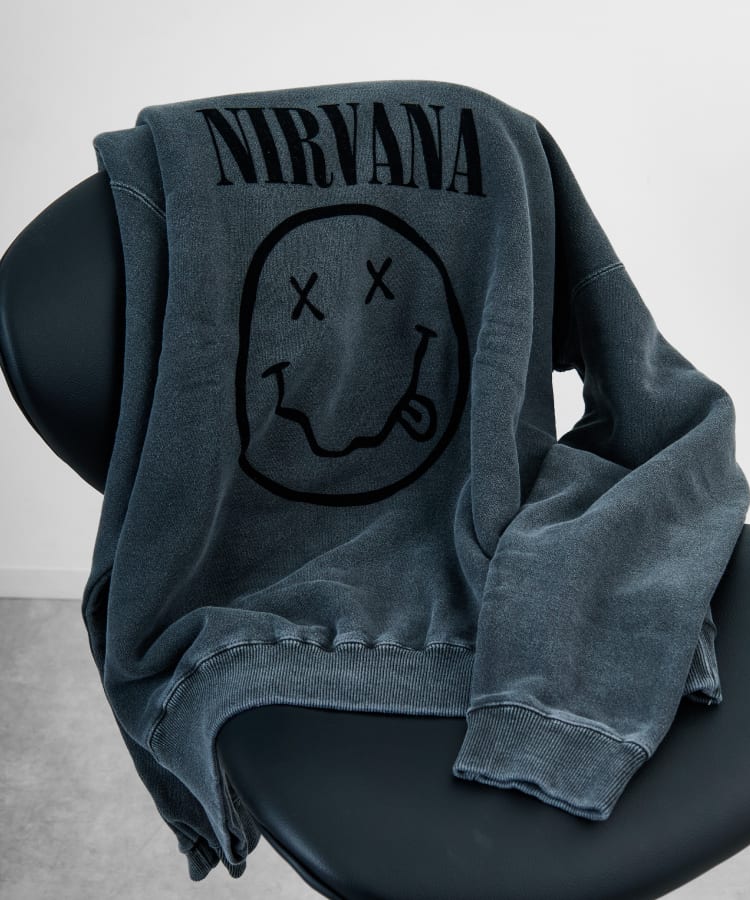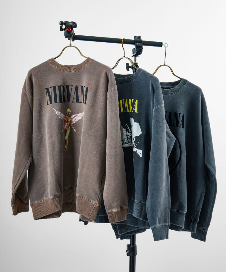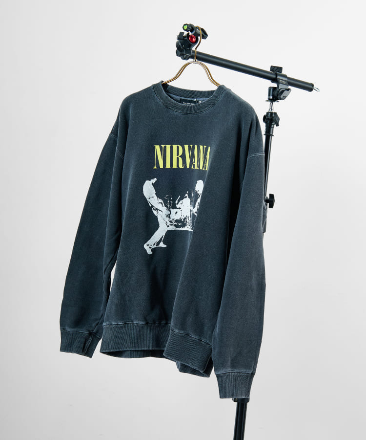別注 NIRVANA フロッキープリントスウェット [INTN-052-JF](Mサイズ)/¥12,100 tax in