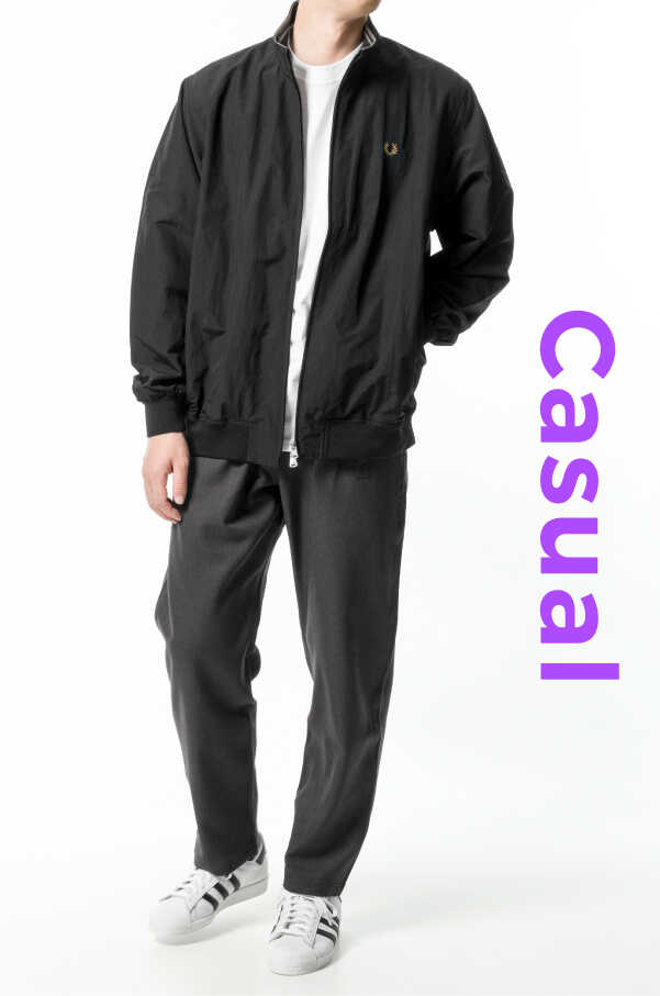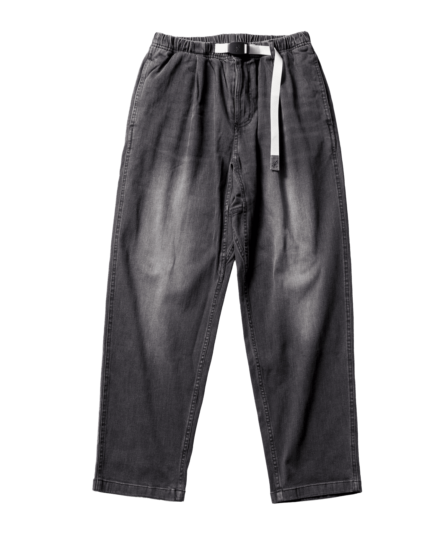 まずジーンズファクトリーでハートを射抜かれたグラミチがコレ、別注のエブリデイパンツ。その名の通り、「毎日でも穿きたい」をコンセプトに型から(一から)別注したモノなんだけど、とにかくシルエットが秀逸。下のモデルカットが手っ取り早く説得力があって、スマートだけど、細すぎずテーパードもキツくない。丈感もちょうどよくて、トップスもシューズも選ばない。そして生地はウール調のポリエステルを使うことで、大人のカジュアル、キレイめな格好にもスマートに自然体で装えるのだ。ご存知の通り、グラミチはクライミングが出自で、カジュアルなパンツだけど、エブリデイパンツはジャケパンスタイルや革靴にもシレっと合わせられて、まさに大人のエブリデイに対応。ミツキはパンツがコーディネートの基本軸と思っていて、エブリデイパンツはまさに日々の装いにこのうえない存在になると思う。代名詞のウェビングベルトによって、サクッと出掛けられるのもいいし、モノトーンにまとめたランニングマンのロゴも着回しやすい。ホント、1本あれば鉄板、着こなし迷子にならずに済みますよ。