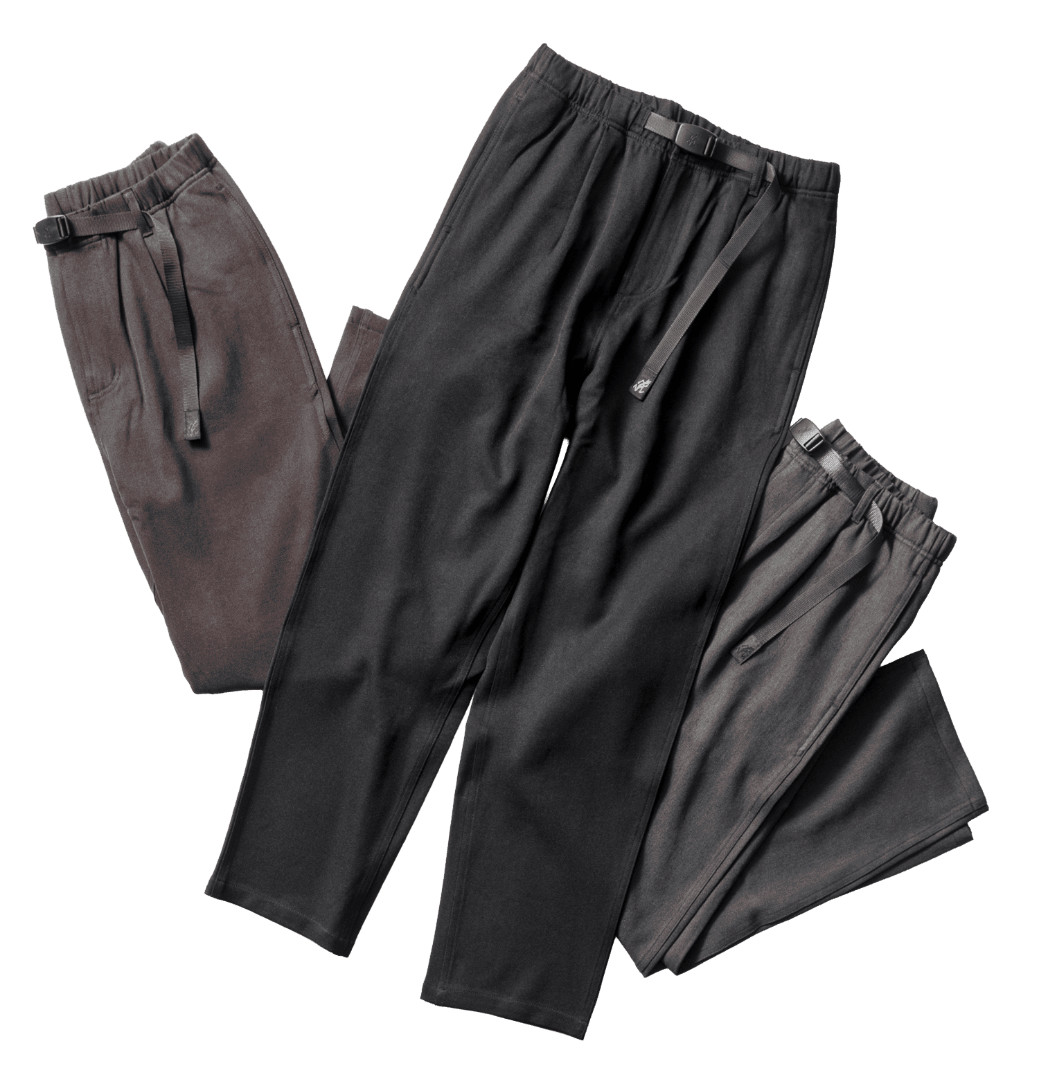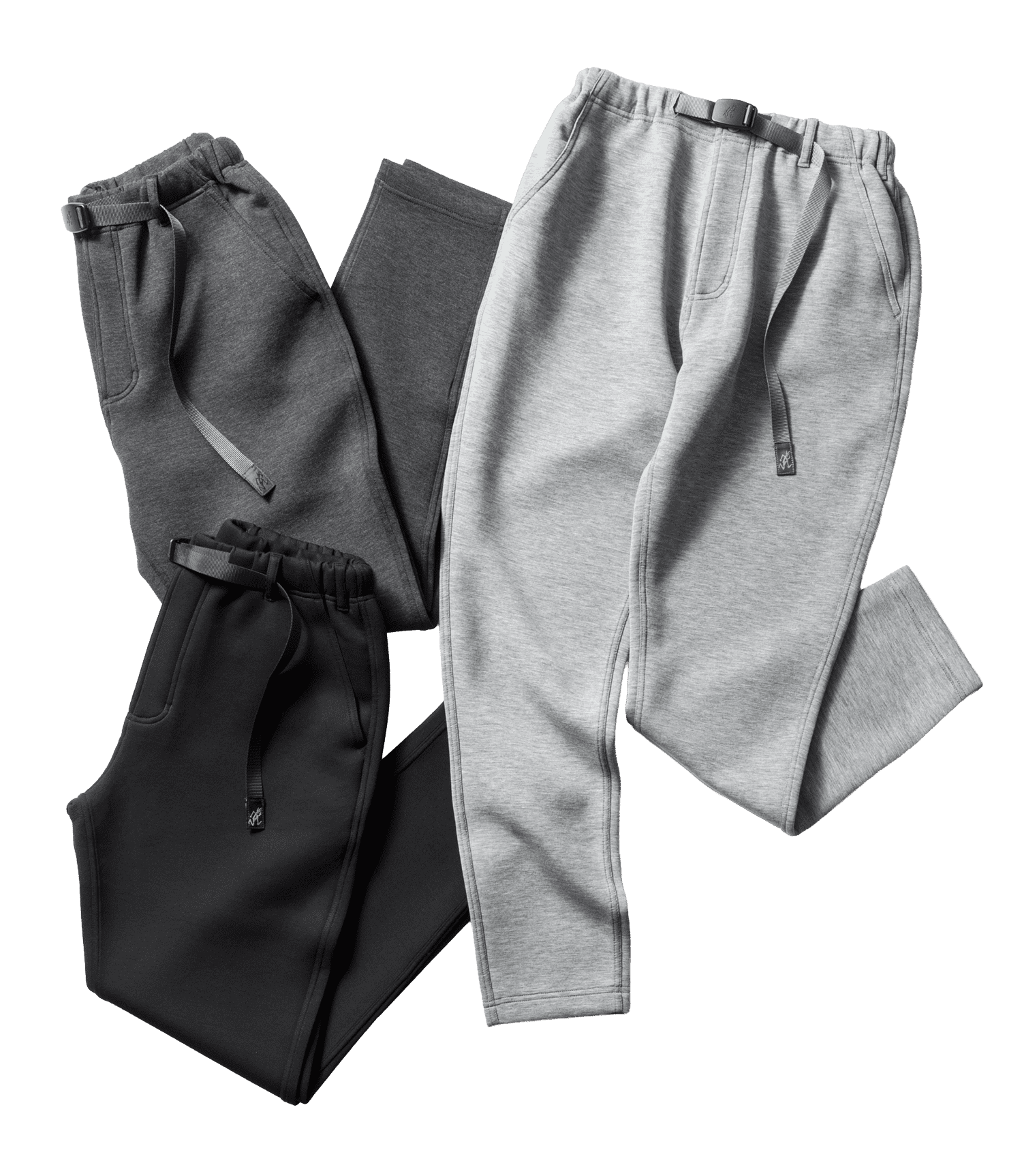 シャープな美脚シルエット。でも動きやすくて楽チン。秋冬に快適な温かみも欲しい。そんなワガママさんの煩悩を叶えてくれるのが、テックニット スリムパンツ。見ての通り、スラッと美脚を地でいくシルエットだけど、動きにくさは一切なし。素材はストレッチ性抜群のニットジャージーで、ノンストレス。ジャージーに空気を含むから、ほっこりする温もりまで備えているのだ。系統の似たジャージー、スウェットパンツってウエストはドローコード仕様が多いけど、グラミチは持ち前のウェビングベルト付きで、煩わしさなく着用時の安心感にも優れてる。だからレジャーやアウトドアでもアクティブに使える。美脚だけじゃない、使いミチがいろいろってのもお見逃しなく!