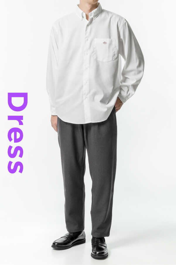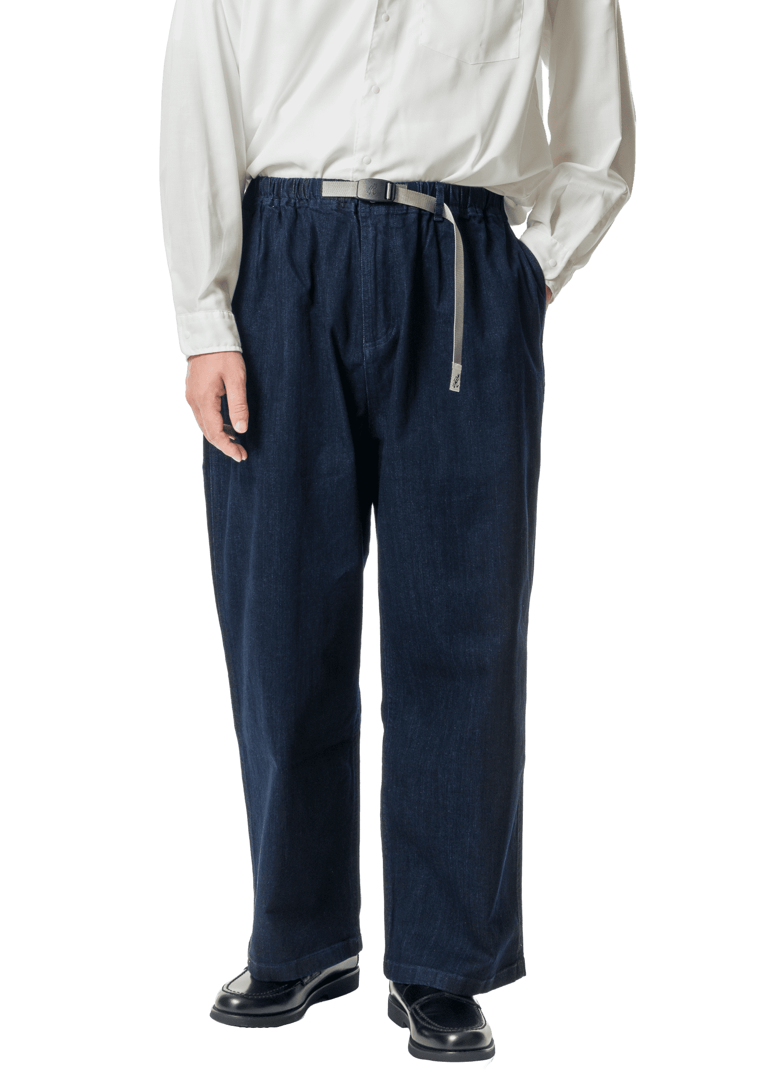 良作揃い!っていうにはまだ続きがあり、それぞれのスタイルや好みに応じた1本が見つかるから。こちらは穿くだけで、着こなしに今どき感を注入できるワイドパンツです。シルエットはガツンと硬派なワイドストレート。数年前から一世を風靡してる、ワイドテーパードじゃないところにも、ジーンズファクトリーの見識を感じさせますね~。素材はデニムとウール調。デニムは、90sやストリートライクな着こなしが好みな方にうってつけ。ウール調はウェビングベルトを生地と同色にして、ワイドシルエットならではのドレープも映える1本。モードなムードで穿けて、ランニングマンとのコンビネーションも鮮度たっぷりなんだよな~。