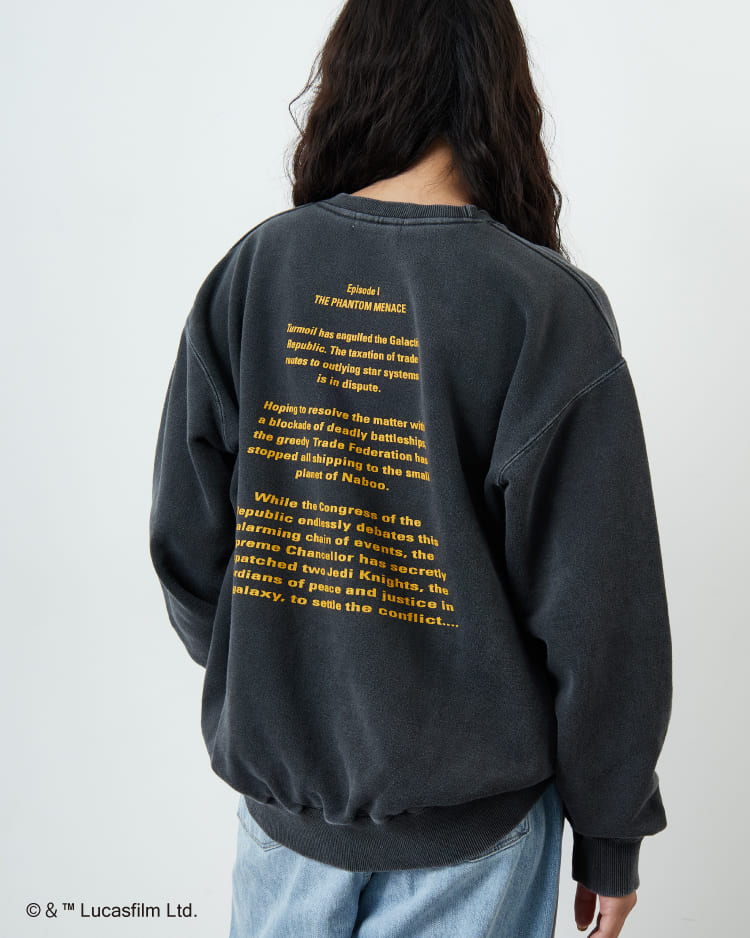 ヘルメットとゴーグルをつけた、劇中でも印象的なシーンが採用し、バックプリントにはエピソード1のオープニングクロールが施した、前後ろスキのないデザインに仕上げています。