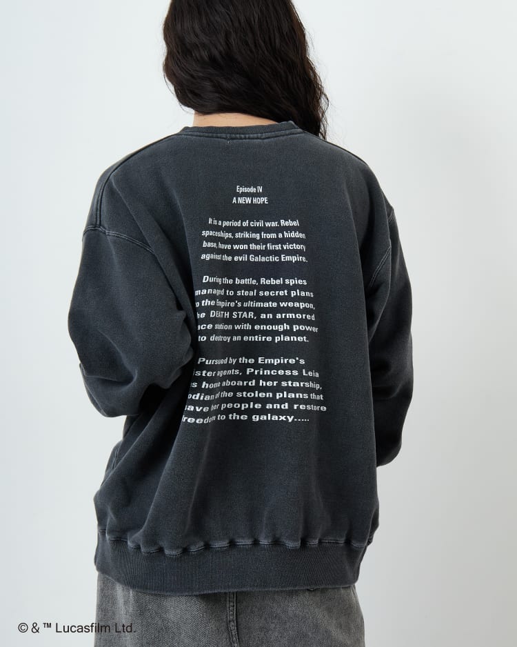 キャッチーで味のあるプリントに、背面には『スター・ウォーズ  /  新たなる希望』のオープニングクロールを採用。