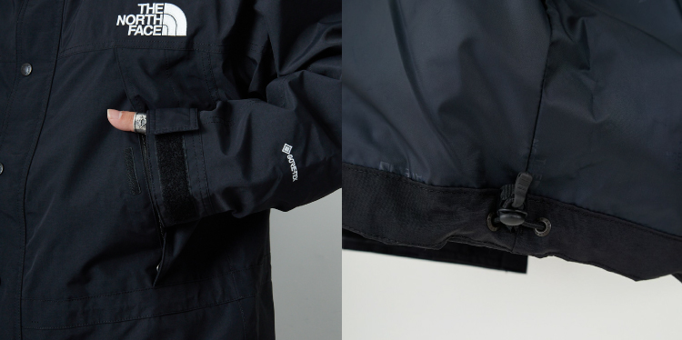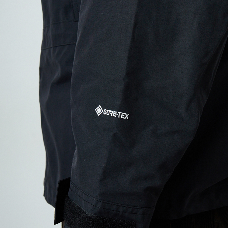 無駄を抑えたシンプルなデザインも魅力で、背面と胸元にワンポイントロゴ、ブランド定番の肩部分にブラックの切り替えが入ったアイコニックなディティール。左袖先には「GORE-TEX」ロゴ刺繍がありさりげないアクセントに。