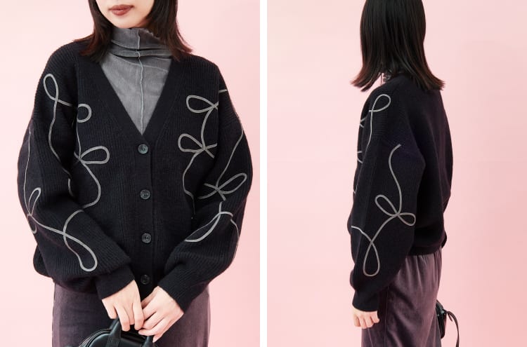 立体的なコード刺繍が存在感のあるnenomのアイコニックなカーディガン。程よくゆとりのあるシルエットに華やぎを添える曲線的なコードデザインは、甘さとモード感が絶妙に共存し、大人の女性にぴったりの一枚です。
