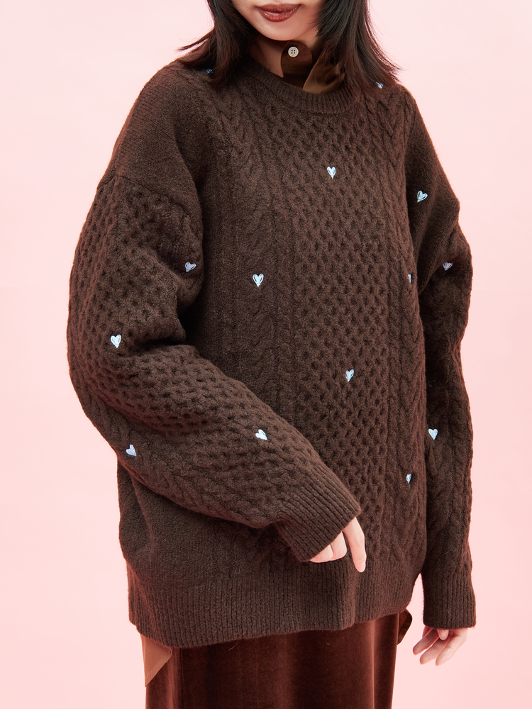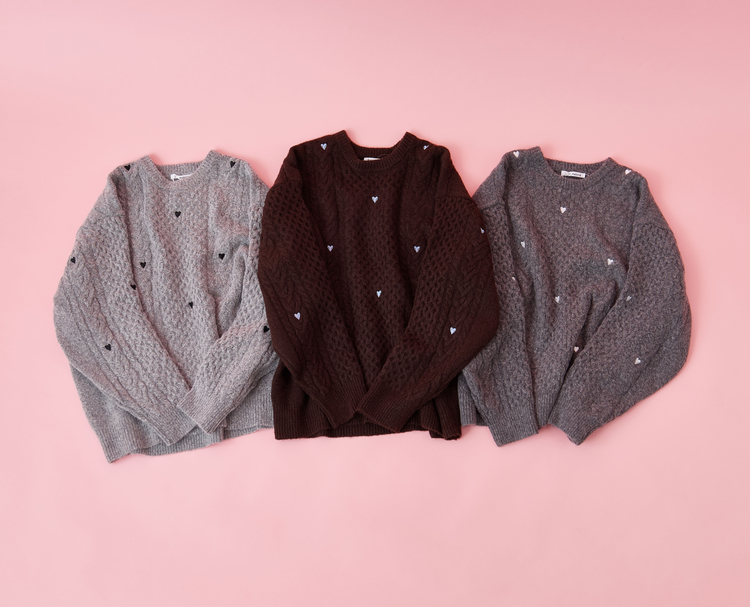 Noir Fabrik ハート刺繍ケーブルニットプルオーバー [NF25131044]/¥9,350 tax in