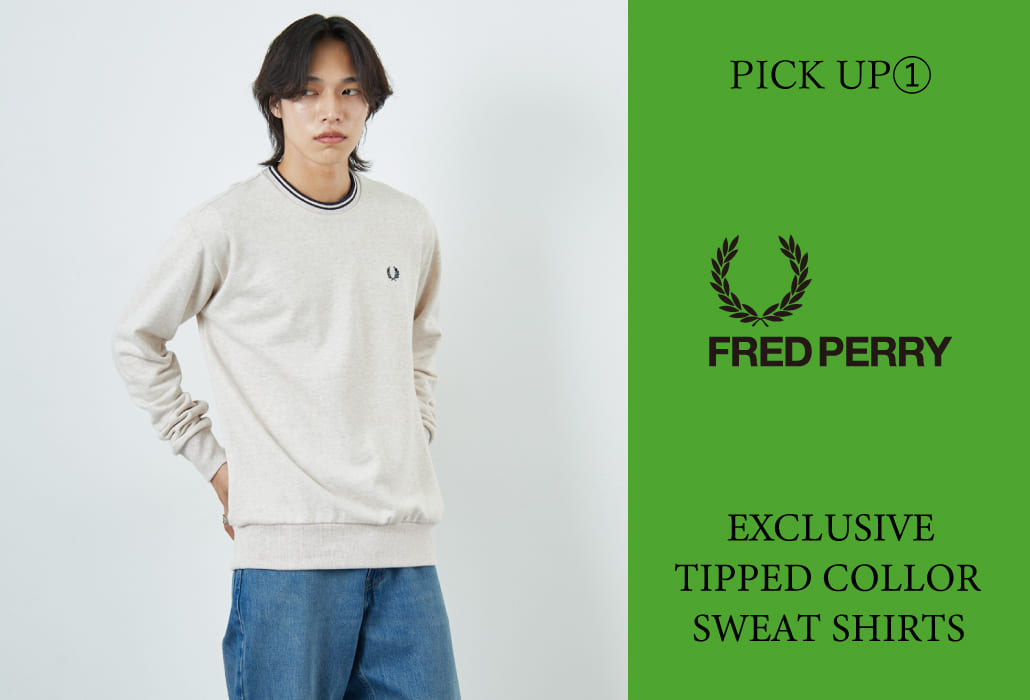FRED PERRY [フレッドペリー] 別注 ツインティップライン ワンポイントロゴ刺繍クルーネックスウェット [FPM-25A-025JF]/¥14,960 tax in(¥18,700→20%OFF)
