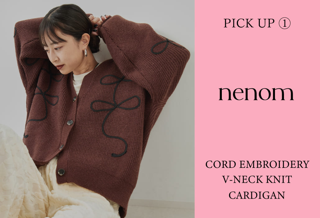 nenom コード刺繍 Vネックニットカーディガン [NE25131038]/¥6,336 tax in (¥7,920→20%OFF)